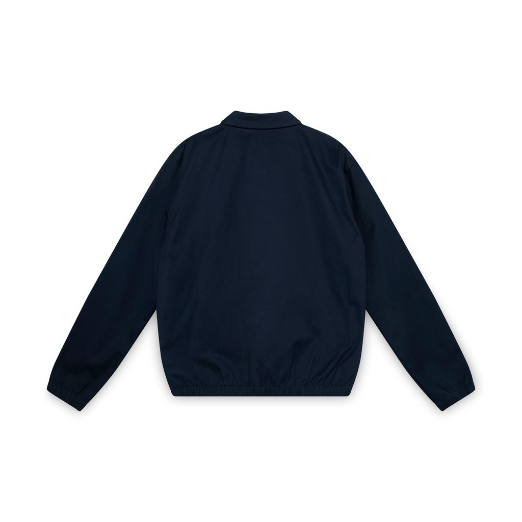 Carhartt Work In Progress logo jacket features logo embroidered at left chest, two front pockets, elastic hem and cuffs, and zipper closure at front.
