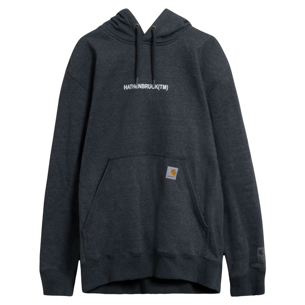 This hoodie from Carhartt x Nike features hood with drawstring ties, front pouch pocket, and printed 'Hathenbruck' on front. In excellent condition.
