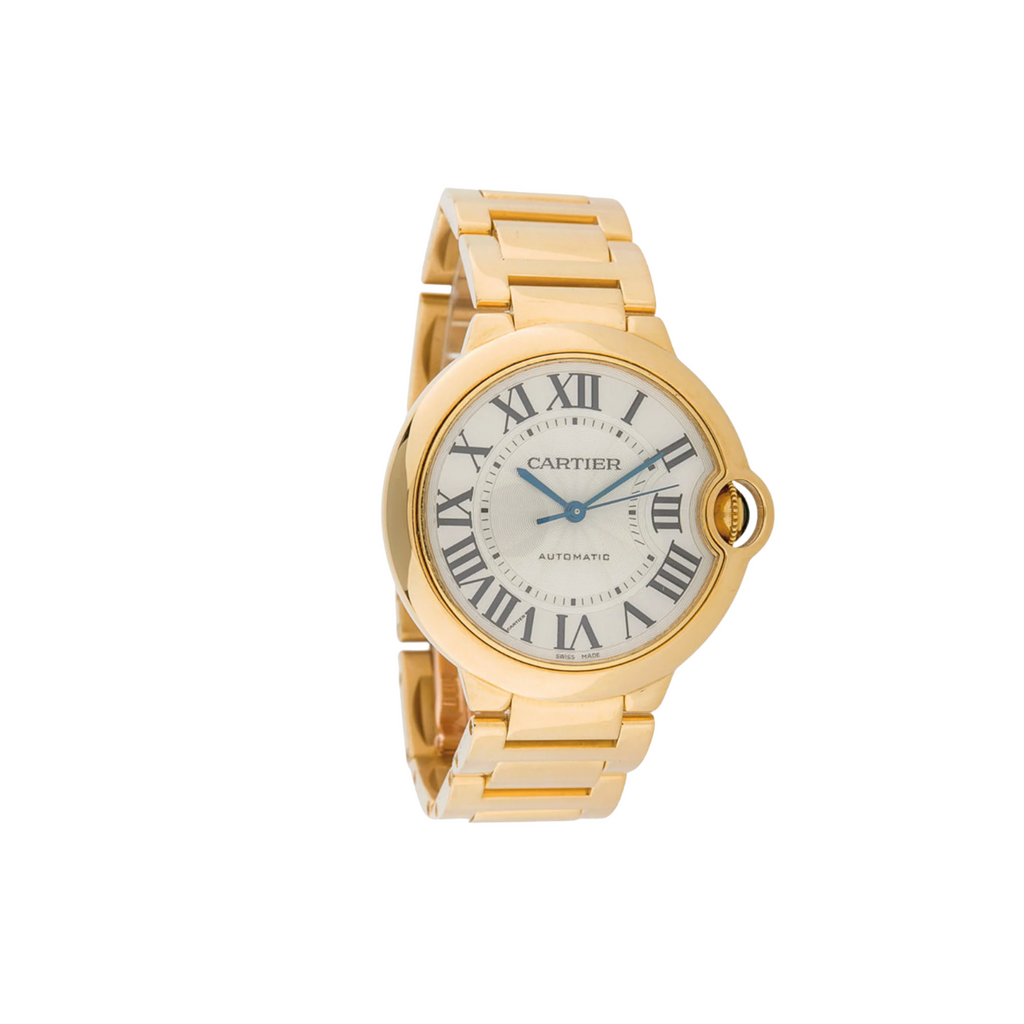 A true icon of modern watchmaking, the Ballon Bleu de Cartier is instantly recognizable for its softly rounded case and signature crown set with a blue cabochon. Crafted entirely in 18k yellow gold, this 33mm model strikes the perfect balance between elegance and everyday wear—timeless, luxurious, and endlessly chic. A classic investment piece with enduring appeal.