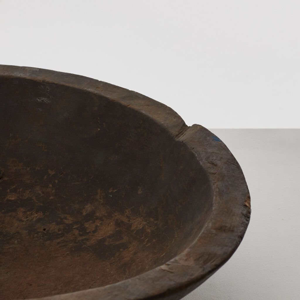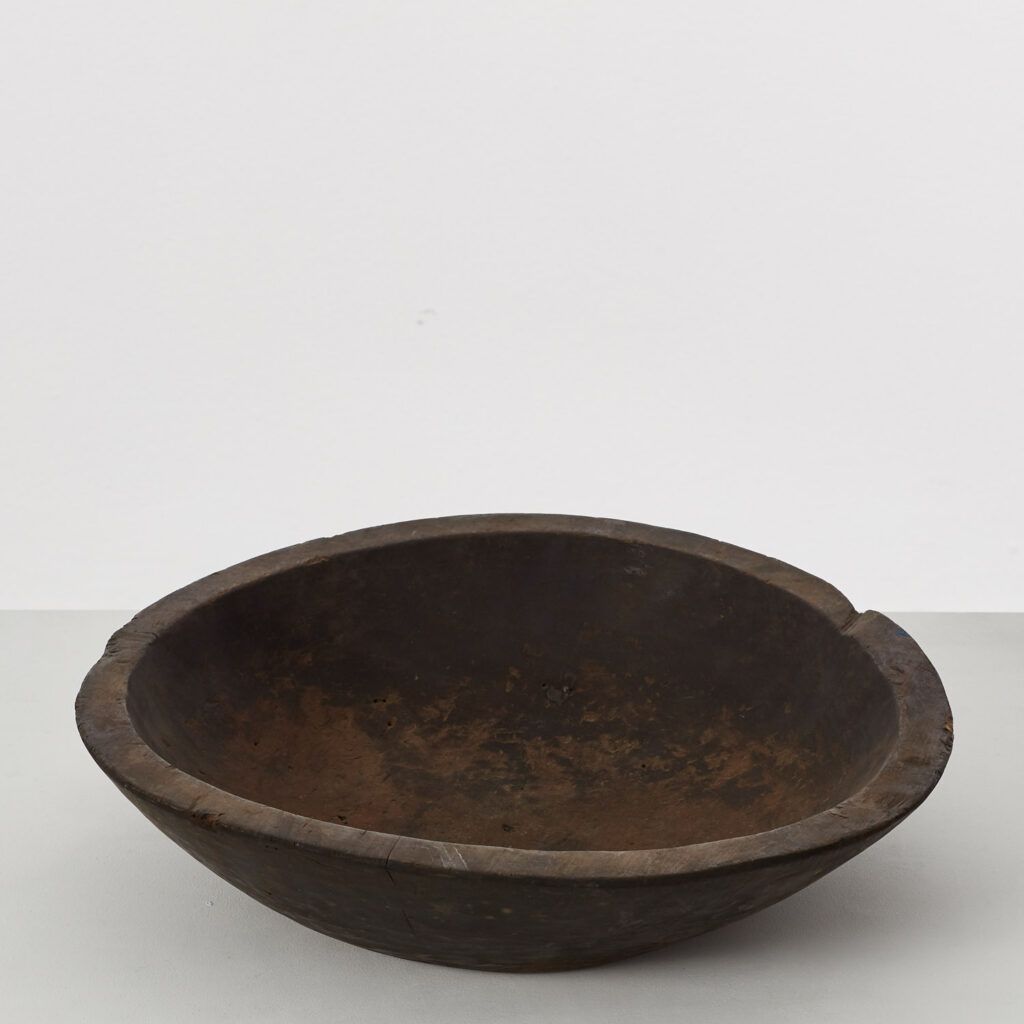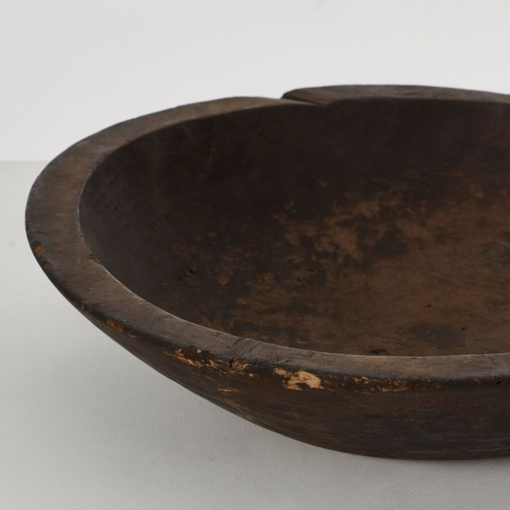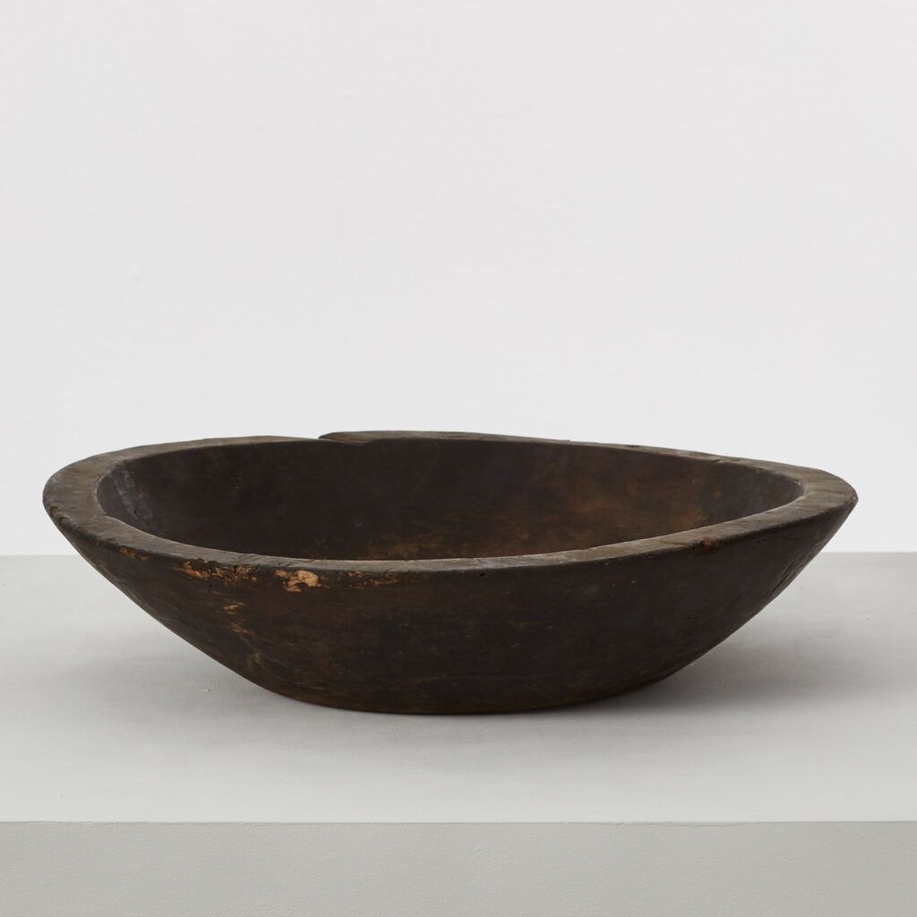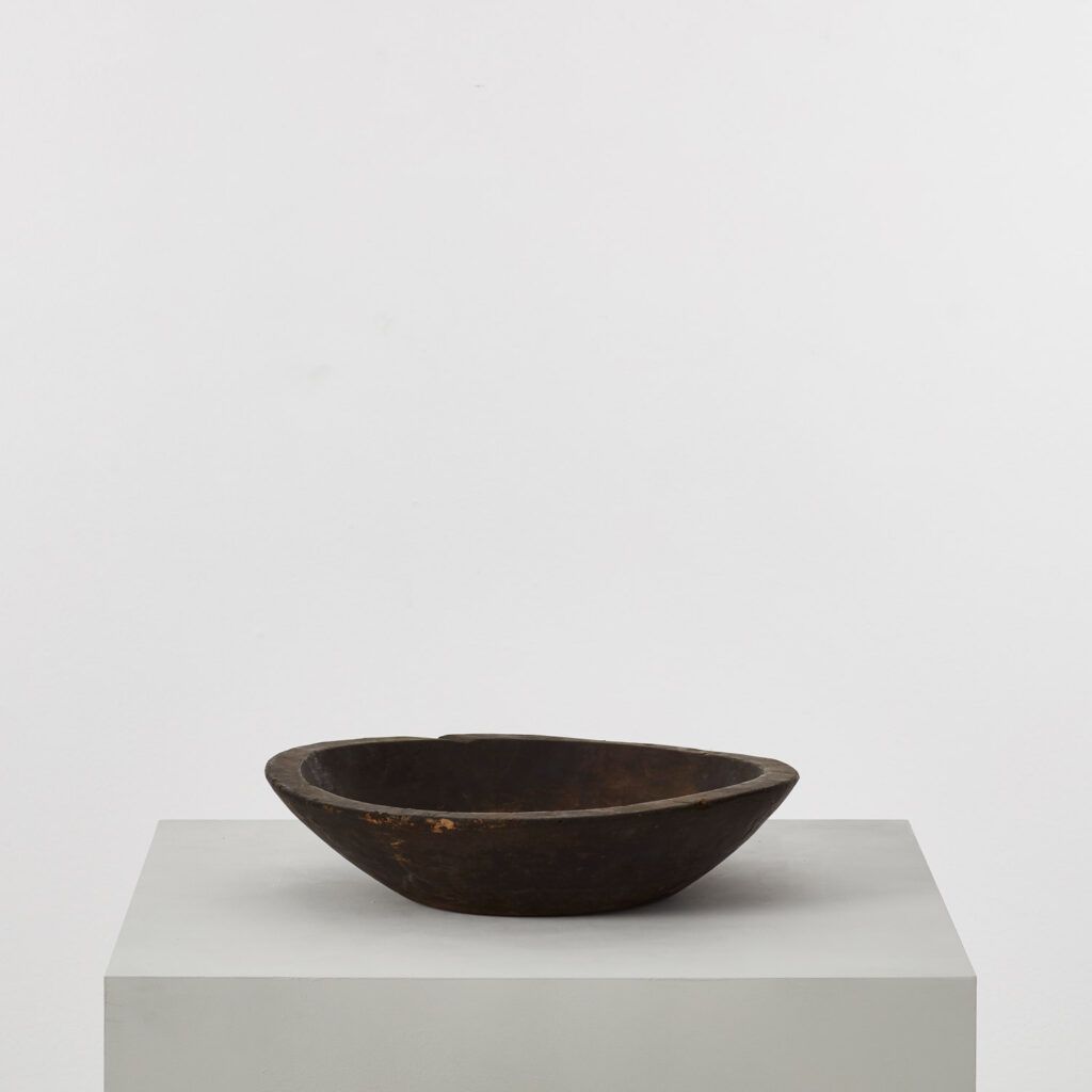 This rare monoxyle bowl would have been carved from a single piece of wood. The technique, which takes its name from an old method for carving canoes or simple boats, has produced a wabi sabi-like silhouette that suggests the hand of the maker. The bowl was made in the Meiji era, a period of great societal, political and industrial change that laid the foundations for modern Japan.