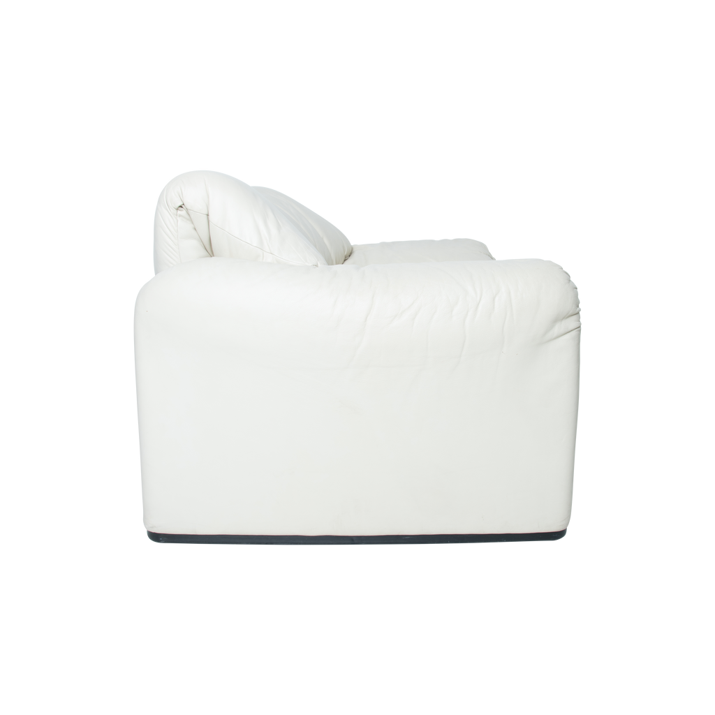 Upholstered in soft beige leather, the sofa features the signature adjustable headrests and folded armrests, while two separate seat cushions ensure ultimate comfort.