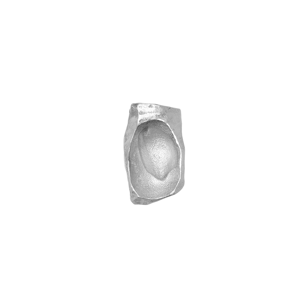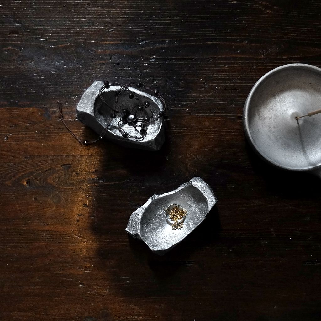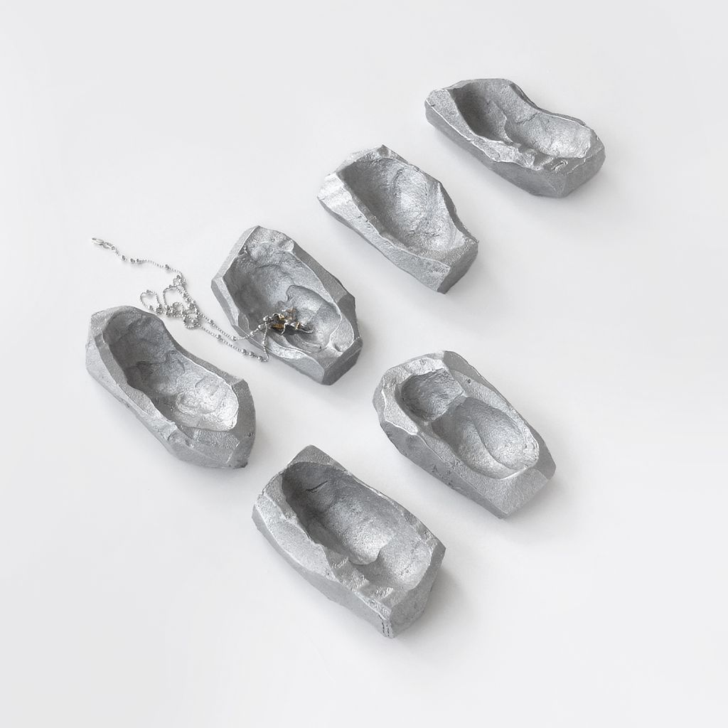 Each sand cast aluminum dish is uniquely shaped, showcasing the natural variations and textures that emerge from the casting process. Perfect for holding small valuables such as jewelry, or other everyday items, it brings a sculptural presence to any surface while celebrating the beauty of imperfection.