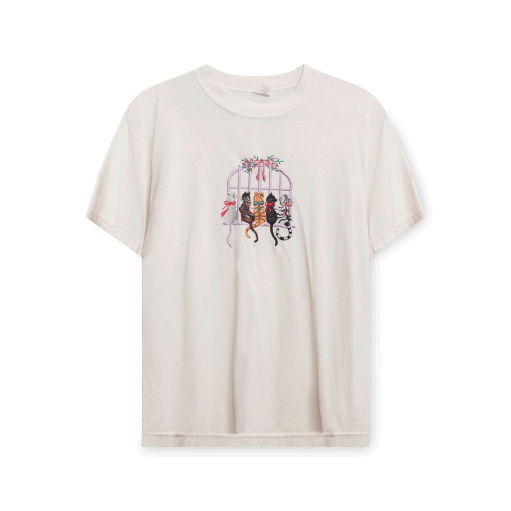 Cat Graphic Tee features embroidered graphic on front.