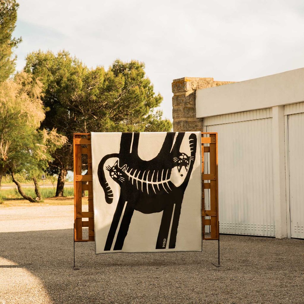Made out of the finest Italian virgin wool, our cat/matches blankets are daring and bold. The sharp contrast between the rich cream and dark black makes these an undeniably eye-catching addition to any room. Thick in weight yet soft to the touch, each is finished skillfully with a whip-stitch border. Whether draped over a sofa or chair, at the foot of your bed, or hung on the wall as decor, our cat jumps out at you in the best way.