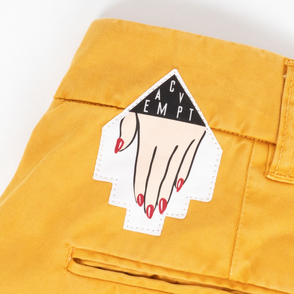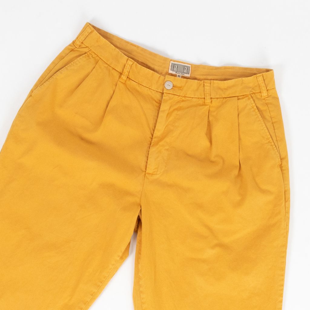 Minimalist style merged with maximalist color, these wide leg chinos from Cav Empt are a fun addition to your summertime rotation. Features pleating at waistband, straight leg silhouette, welted back pockets, Cav Empt hand patch on back left side at waist, and button and zip closure at waist.