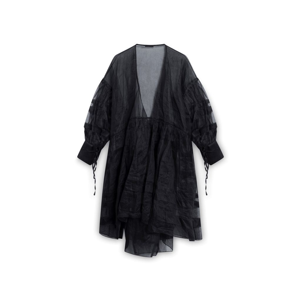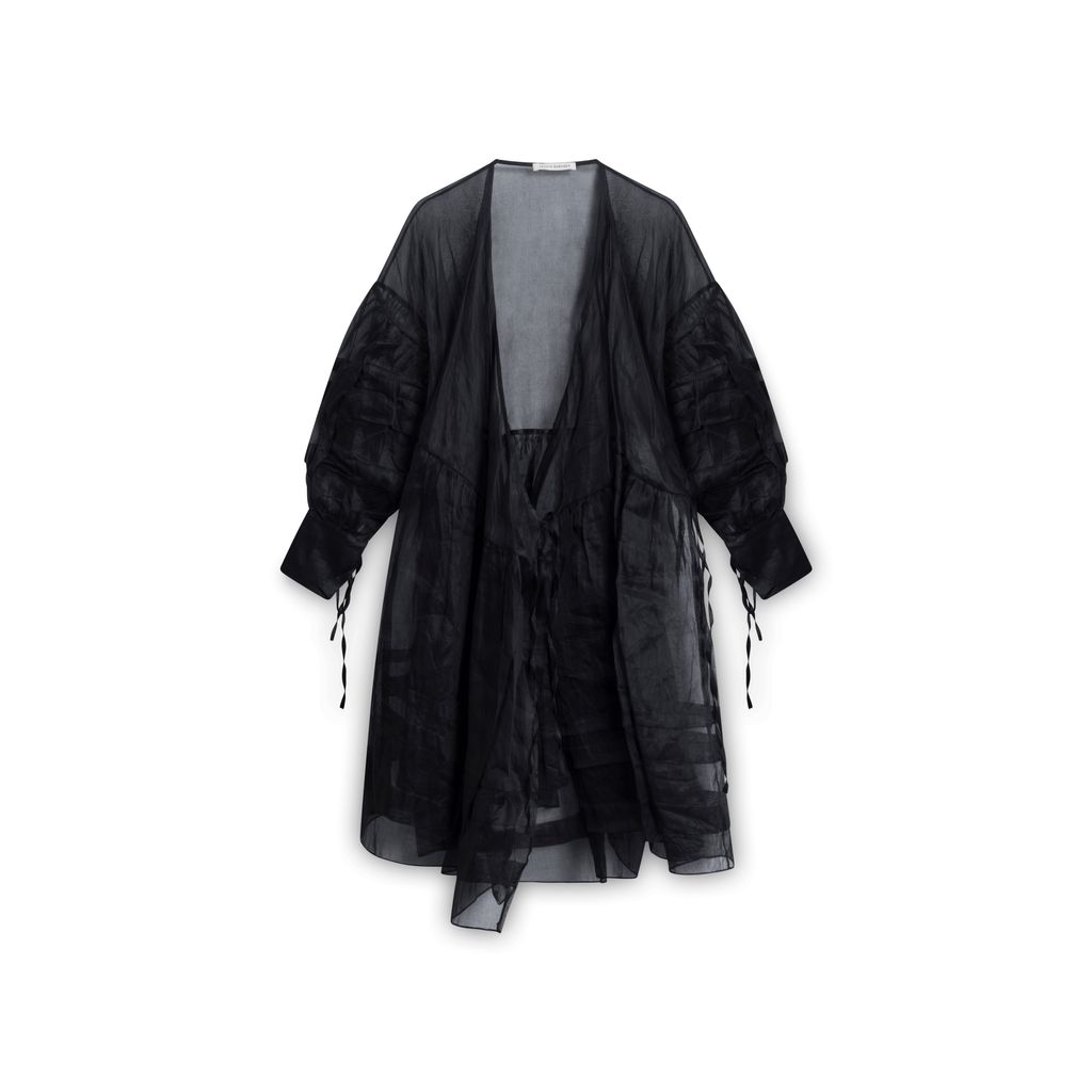 Cecilie Bahnsen Amelie Dress - Black features semi-sheer tulle, puffed 3/4 sleeves, and wrap at the waist and arms.