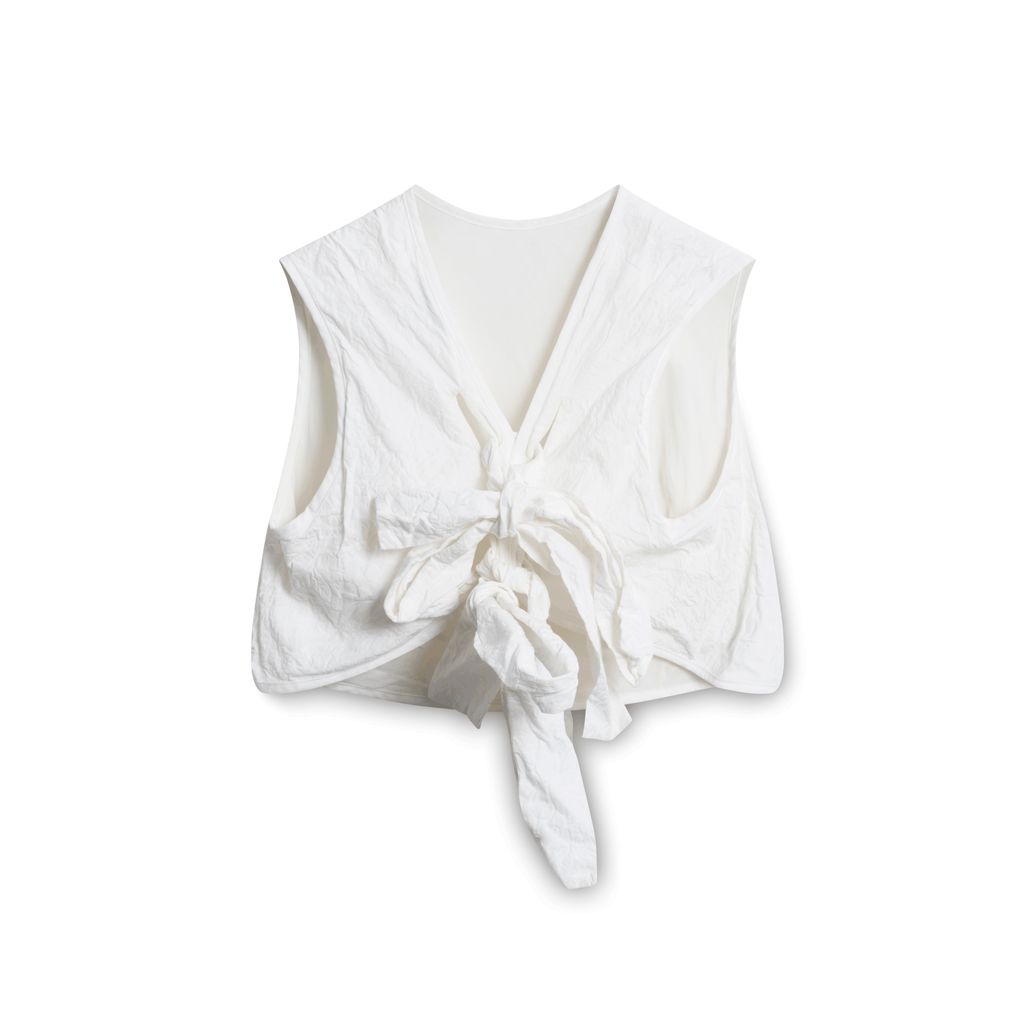 Cecilie Bahnsen Crop Tie Top in White features floral pattern and dual ties at the chest and waist.