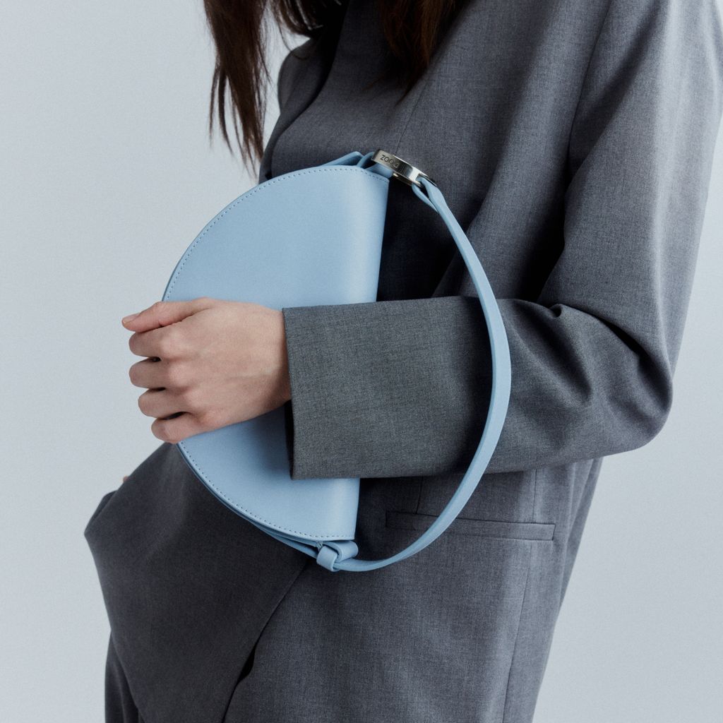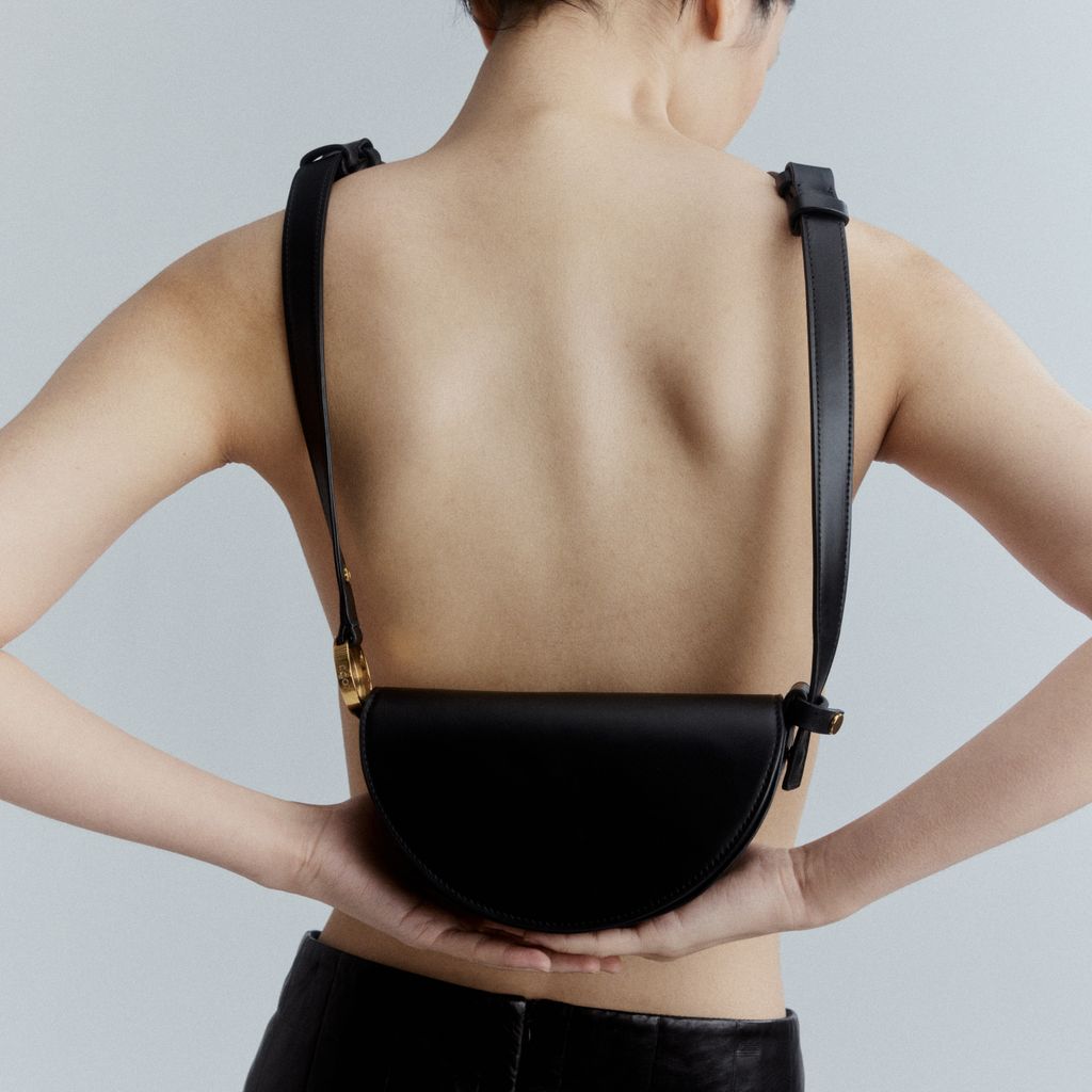 The Céleste redefines the classic half-moon shape with its structured form and signature hardware. Handcrafted from supple Italian calfskin leather, it features both interior and exterior pockets for added function. Adjust the strap by unsnapping it beneath the hardware and again under the belt loop to wear it over the shoulder.
