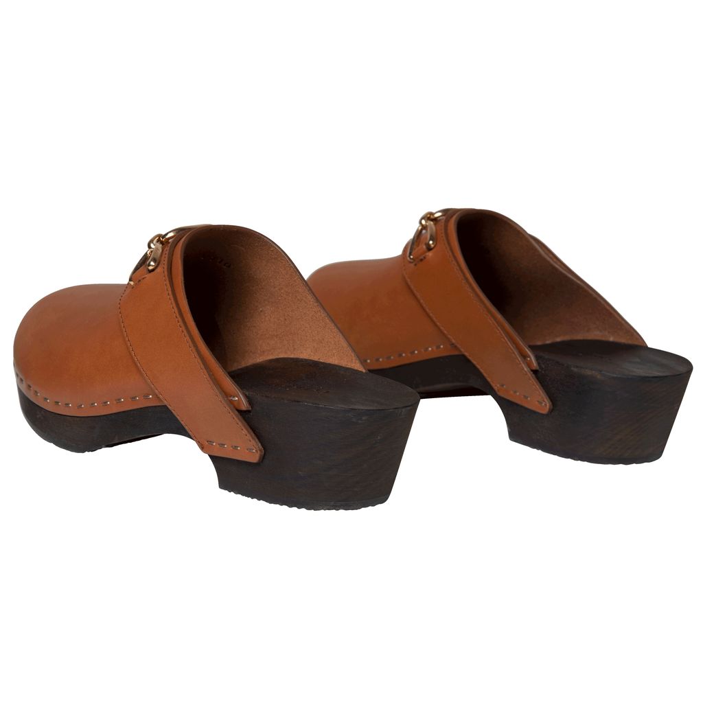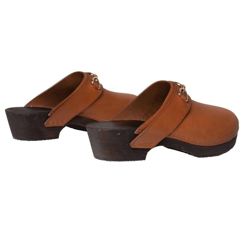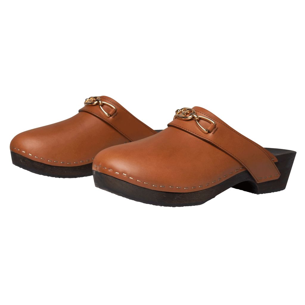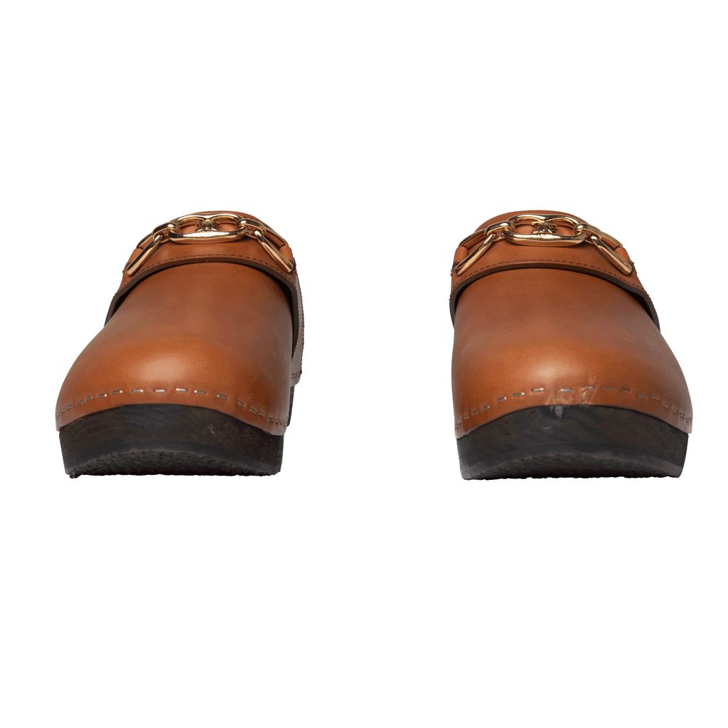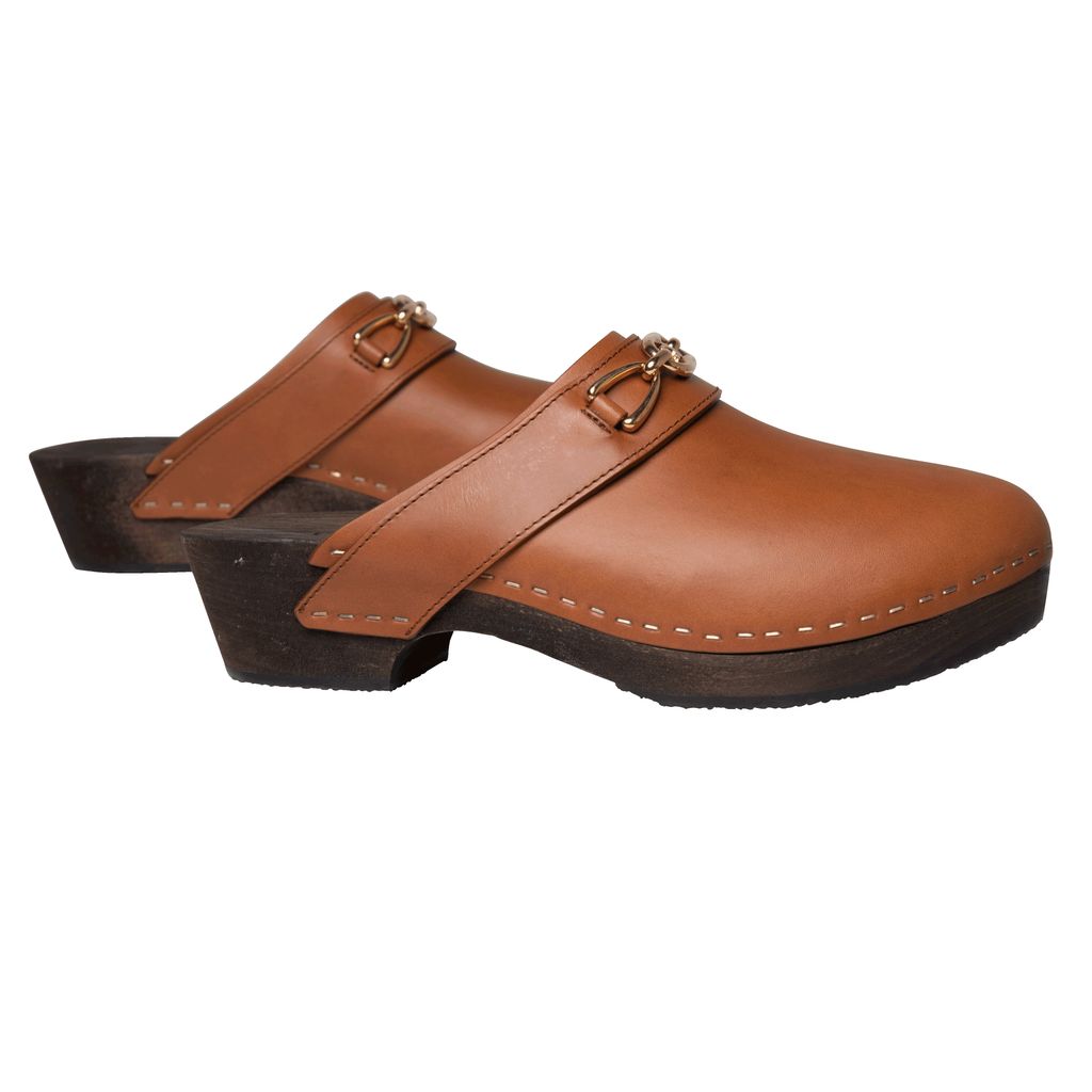 Celine Les Bois Calfskin Clog features lightweight basswood heel, rounded toe shape, and wooden insole.