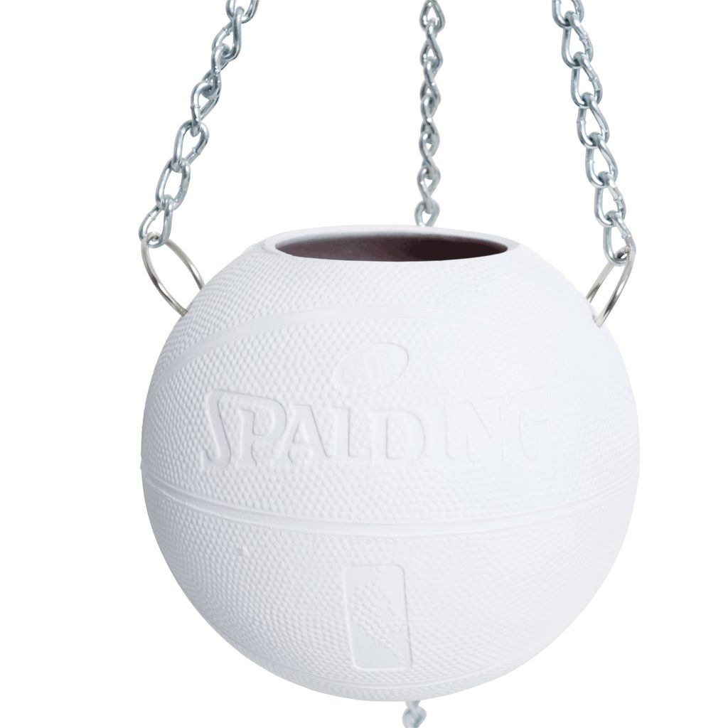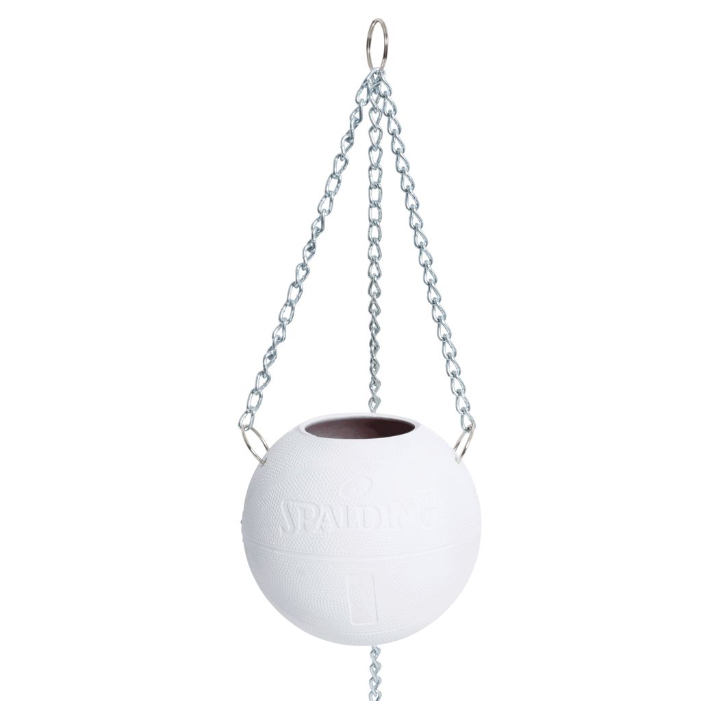This unique ceramic planter is molded in the shape of a Spalding basketball. This sporty planter also includes a silver chain for hanging.