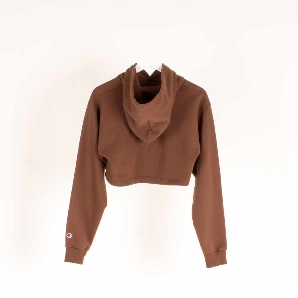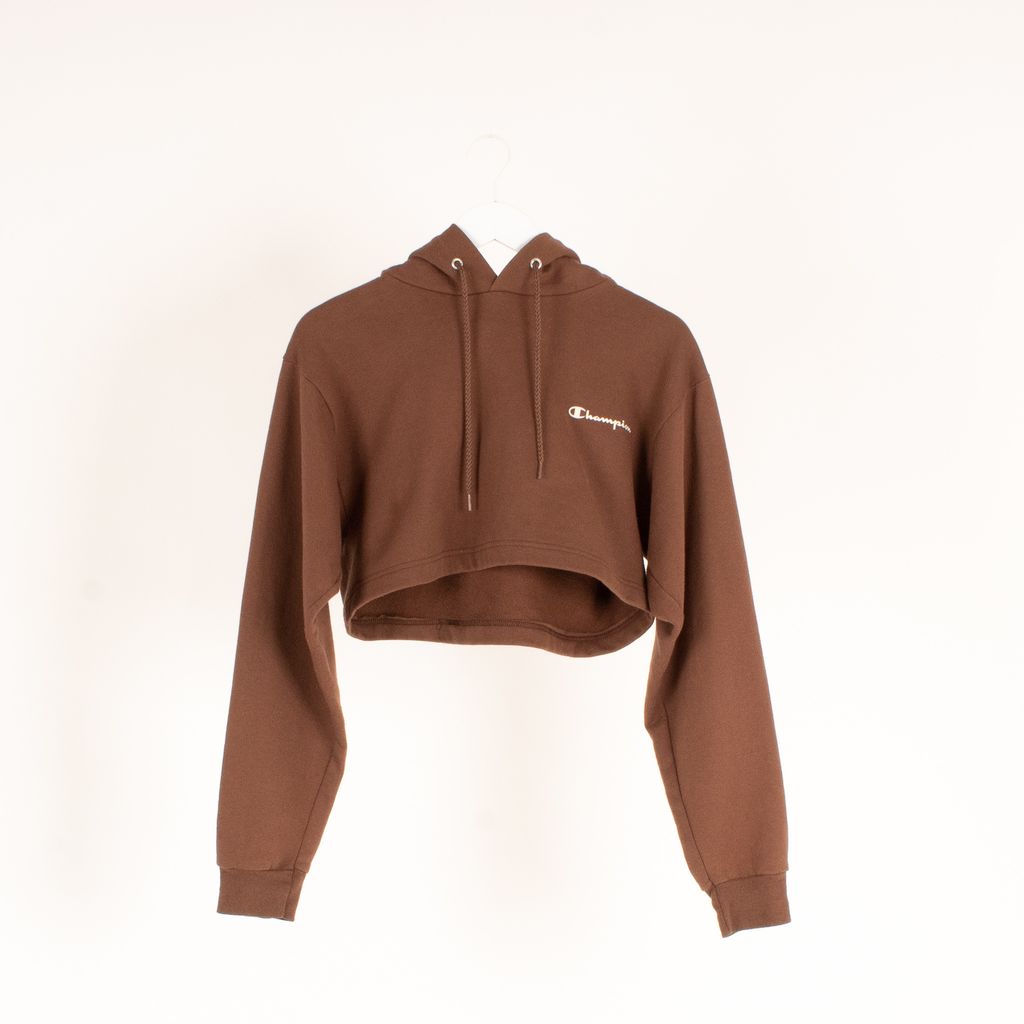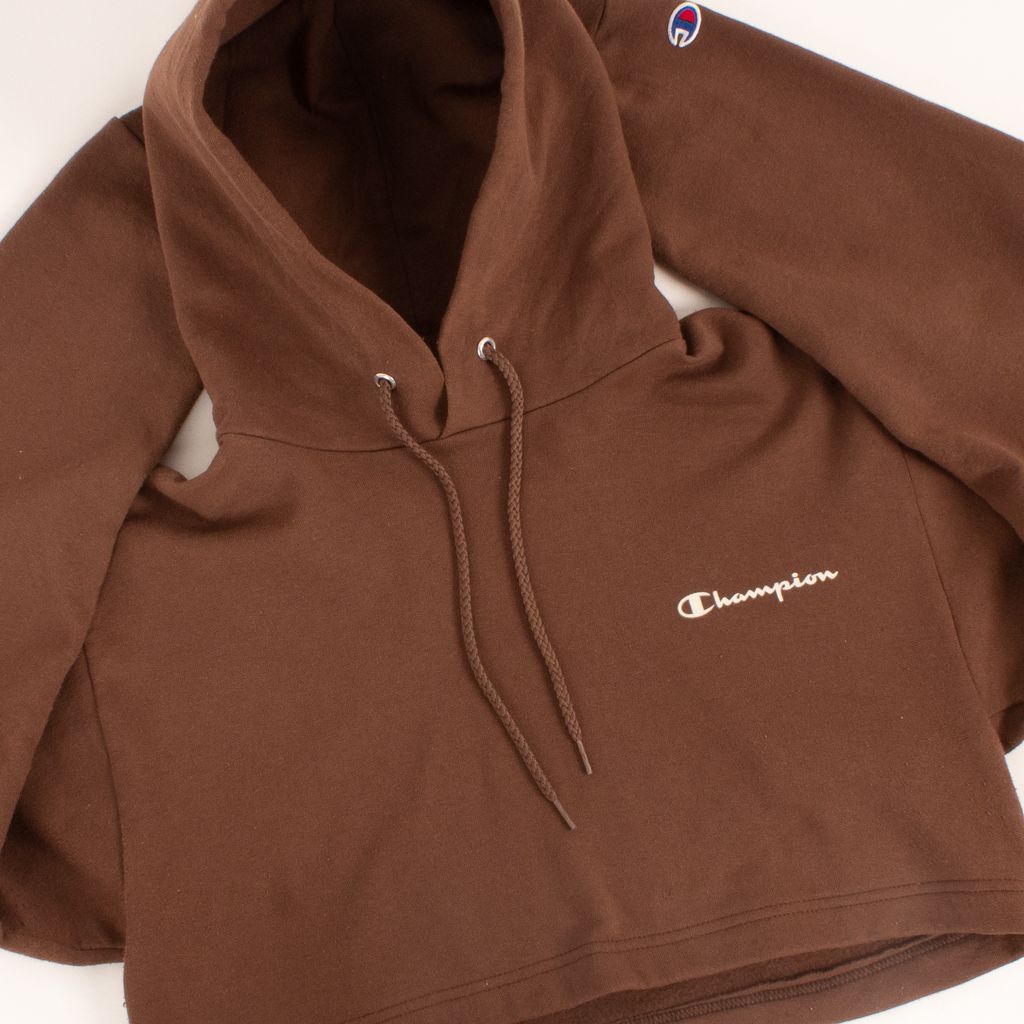 Get your look court ready or runway ready with this cropped hoodie from Champion. Features cropped design with finished bottom hem, full hood, Champion logo embroidered on chest and wrist, rib knit cuffs, and tonal pull tabs for hood.