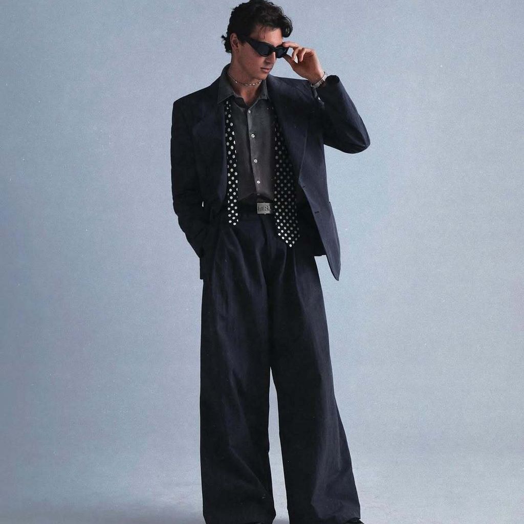 Charcoal Nylon Pleated Trousers