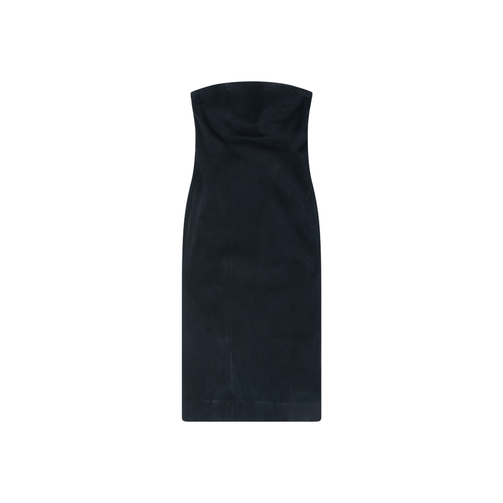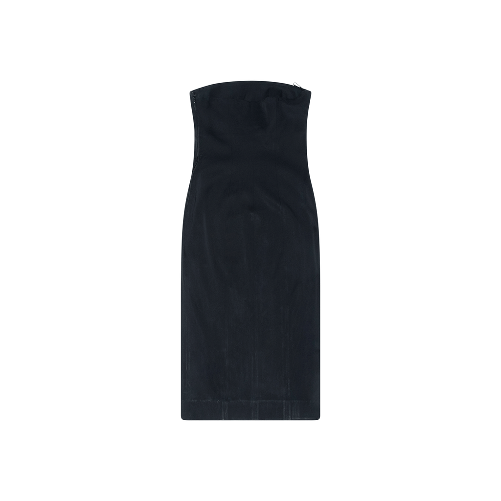 Cheap and Chic by Moschino Black Strapless Dress features hidden side zipper, midi length, body con fit, and boning at top.