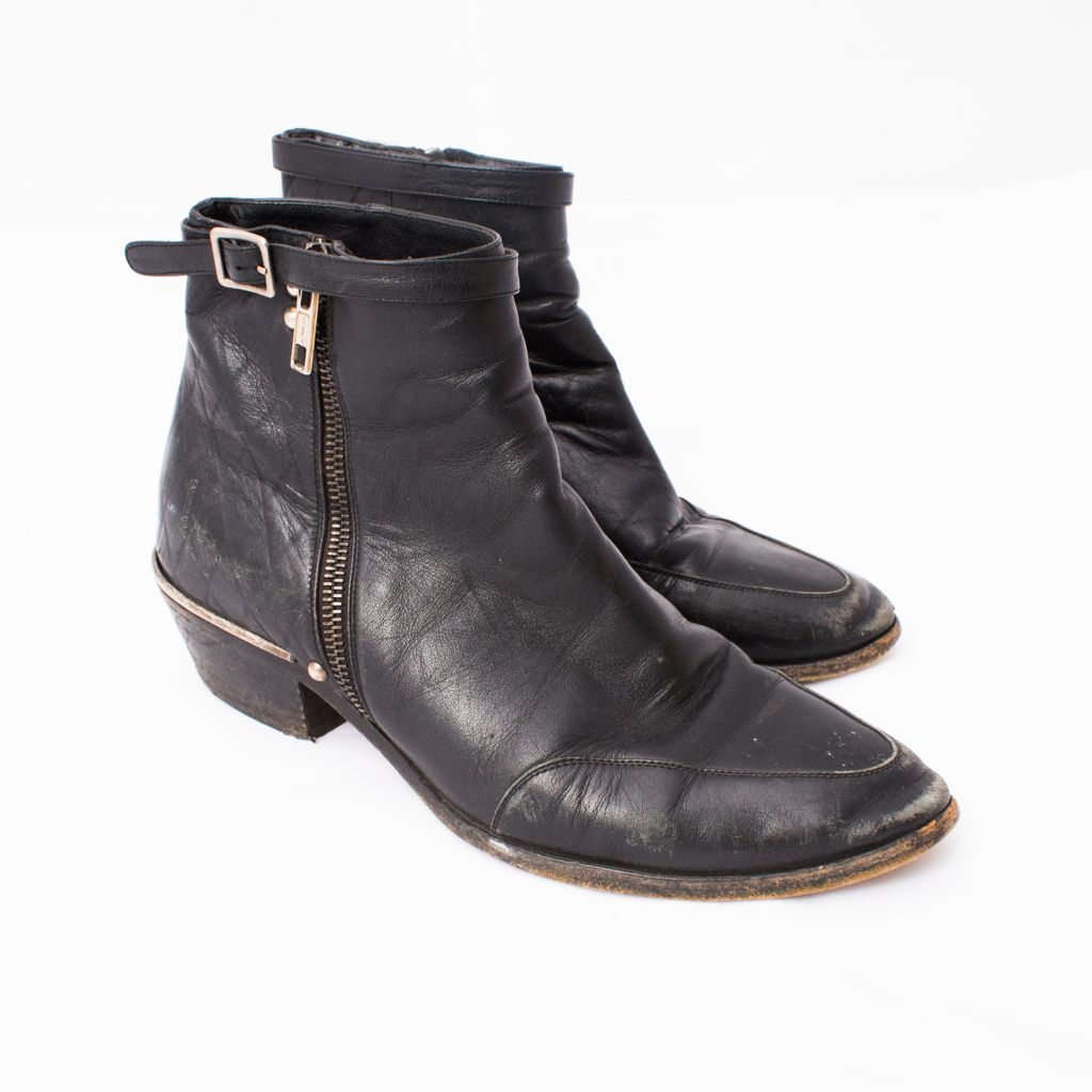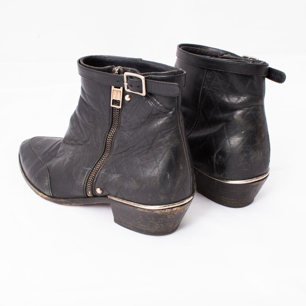 Worn in ankle boots from Chloe. Features an ankle strap and side zipper. A few flaws near the toe and the leather is worn in with some blemishes.