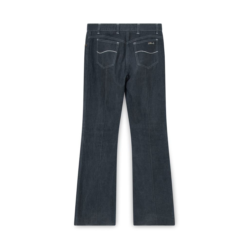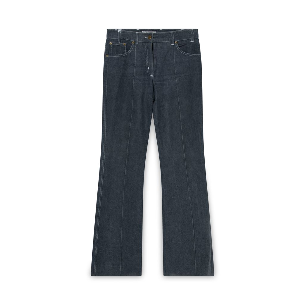 Chloé Grey Flare Jeans features front and black pleat and logo hardware on back right pocket.