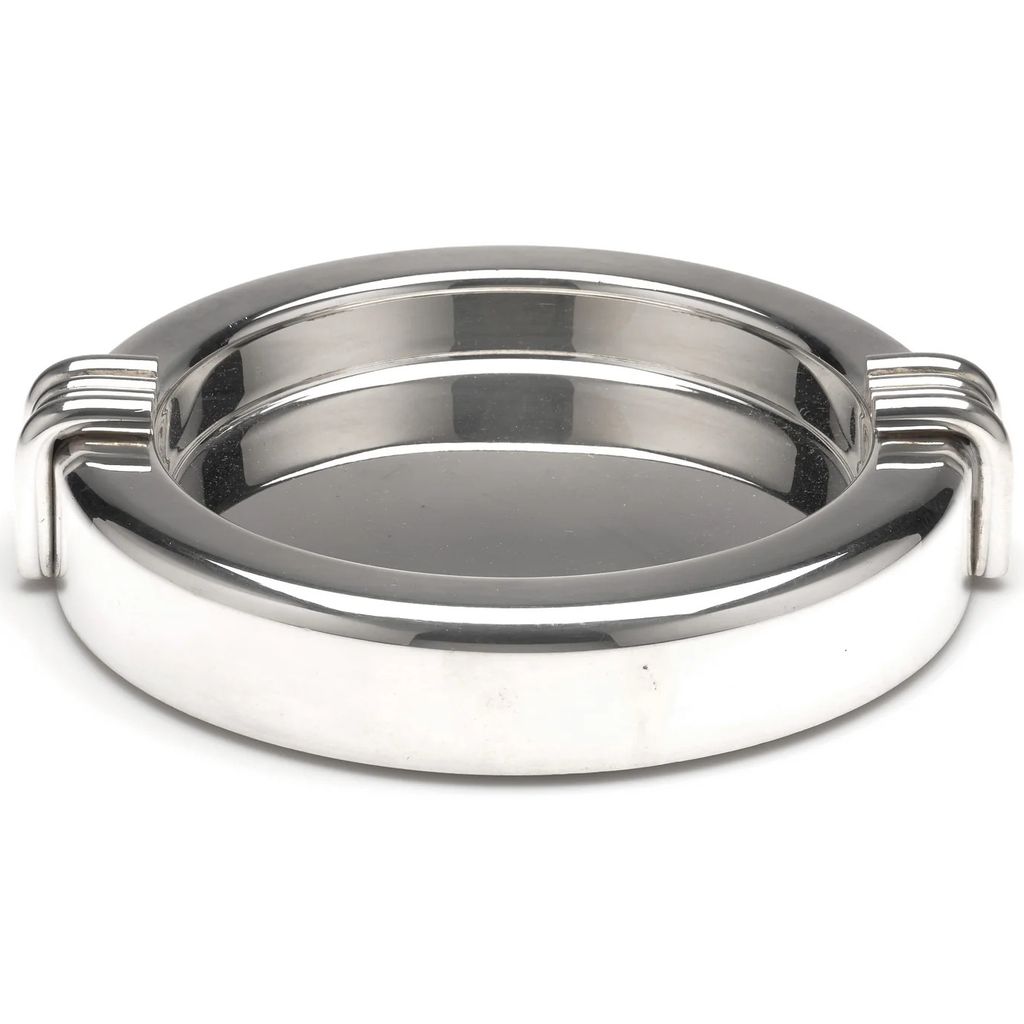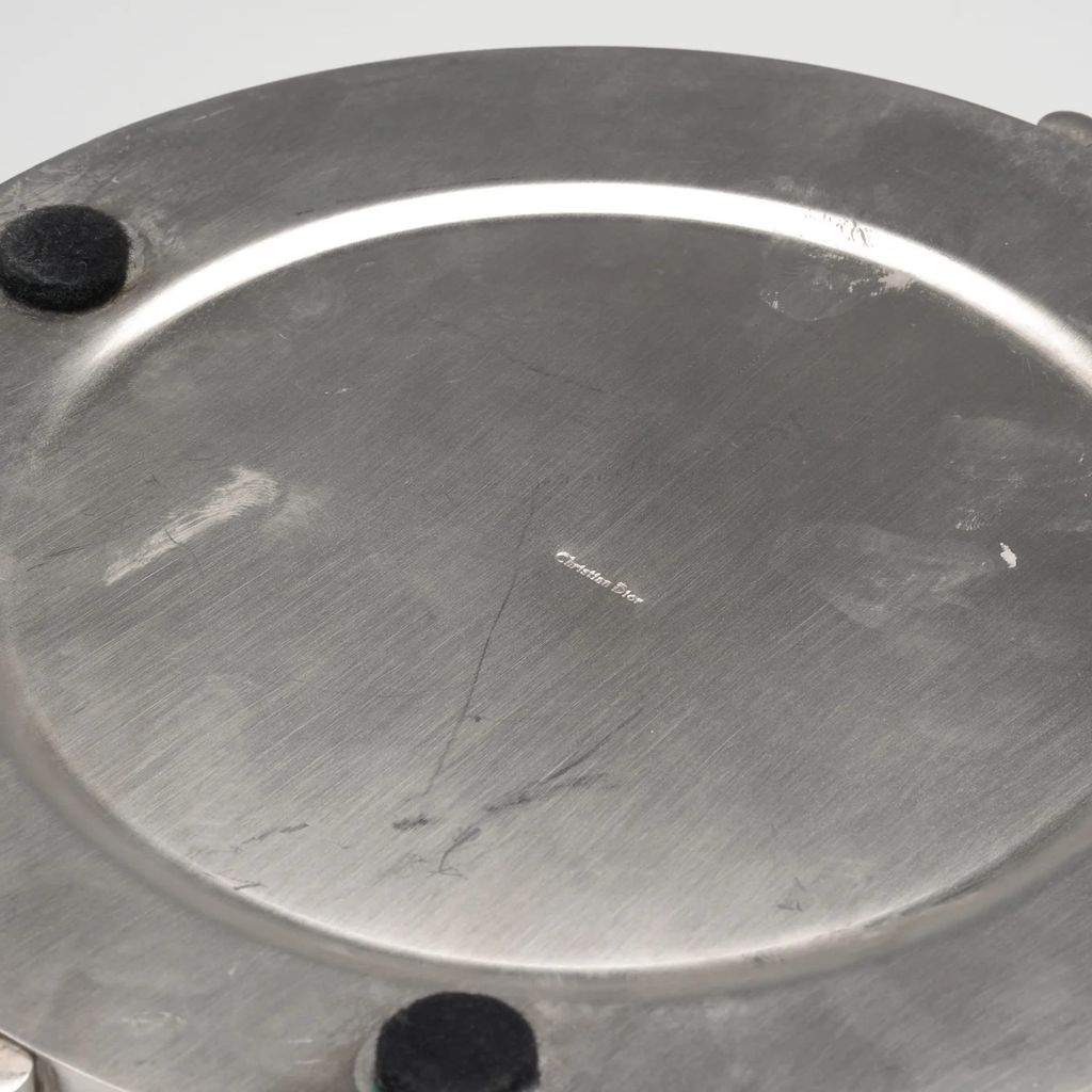 A sleek 1970s Christian Dior silver-plated ashtray, showcasing the house’s signature modern French elegance. Features a minimalist circular form with refined edge detailing, designed as both a functional object and a sculptural tabletop accent.