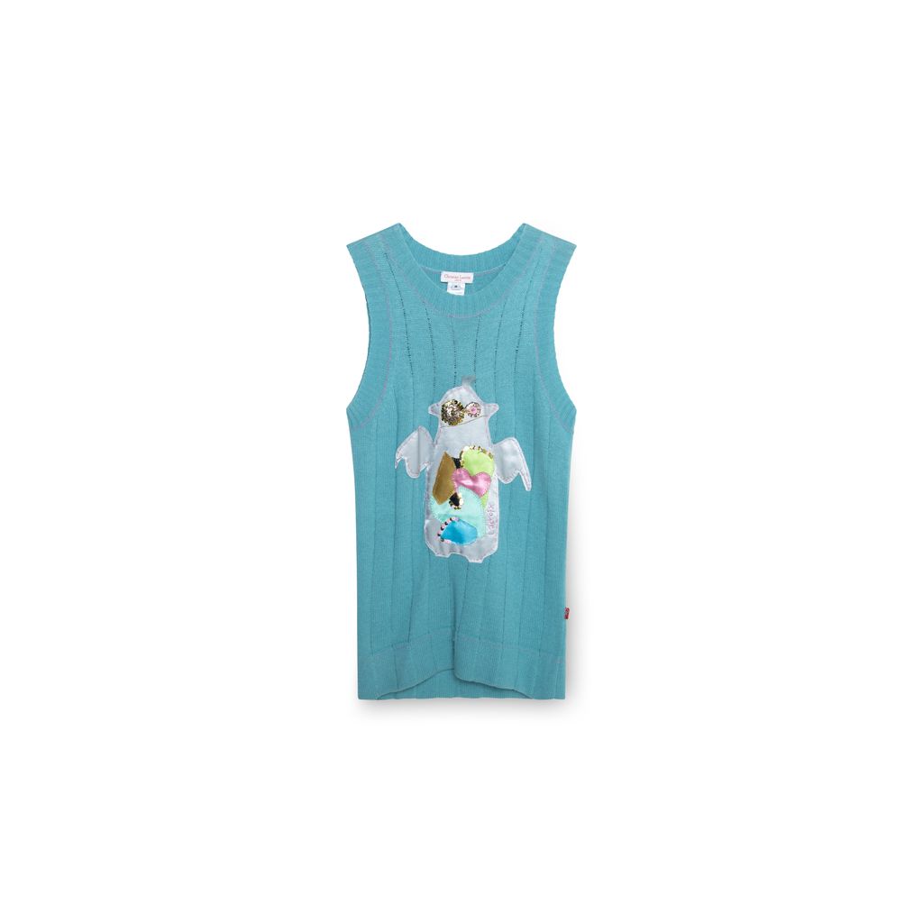 Christian Lacroix knitted sleeveless top features crew neck, embroidered detail at front, and ribbing on all hems.