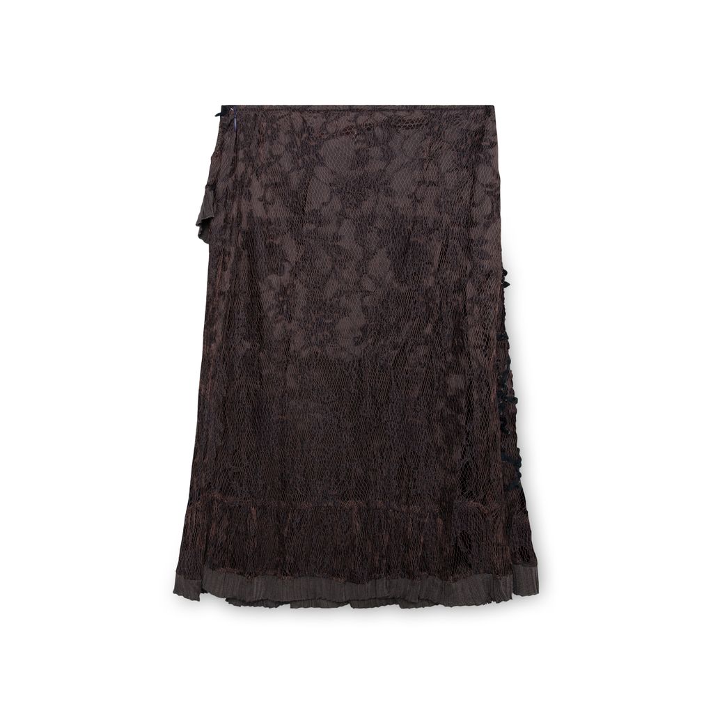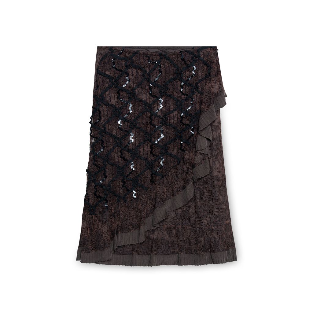Christian Lacroix lace skirt features lace, sequin embellishments, and ruffles details throughout, and invisible zipper closure at side.