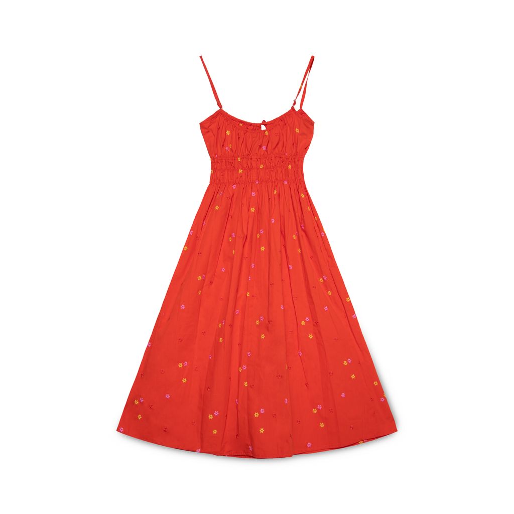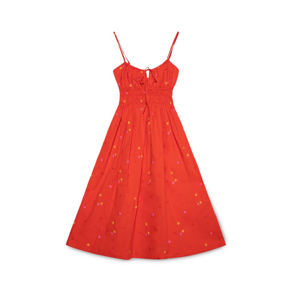 Ciao Lucia Gabriela dress features embroidered details throughout, drawstring at neckline, and spaghetti straps.