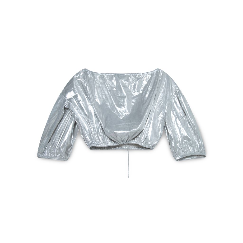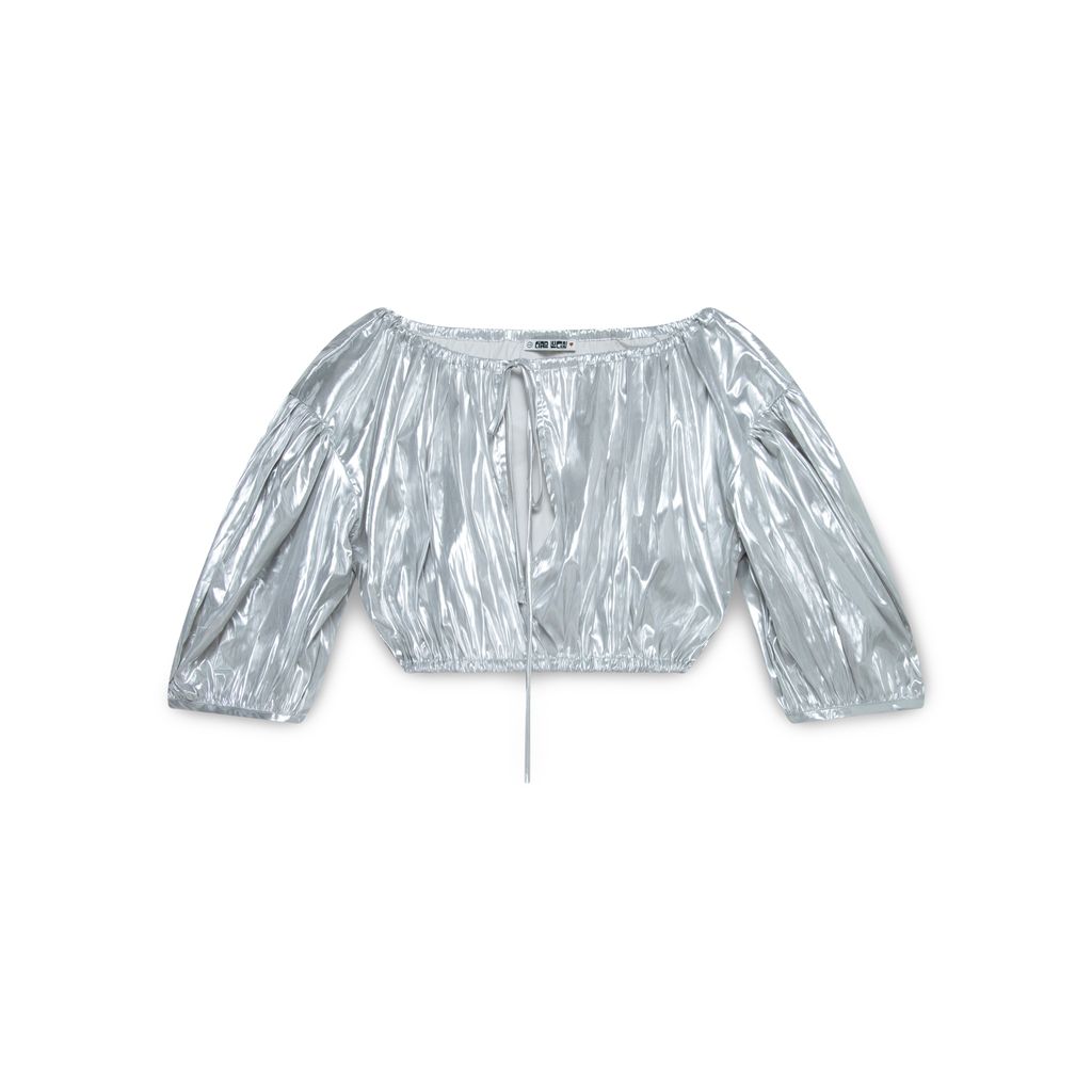 Ciao Lucia Octavia peasant blouse features keyhole design at front, elastic hem, and adjustable tie neckline.