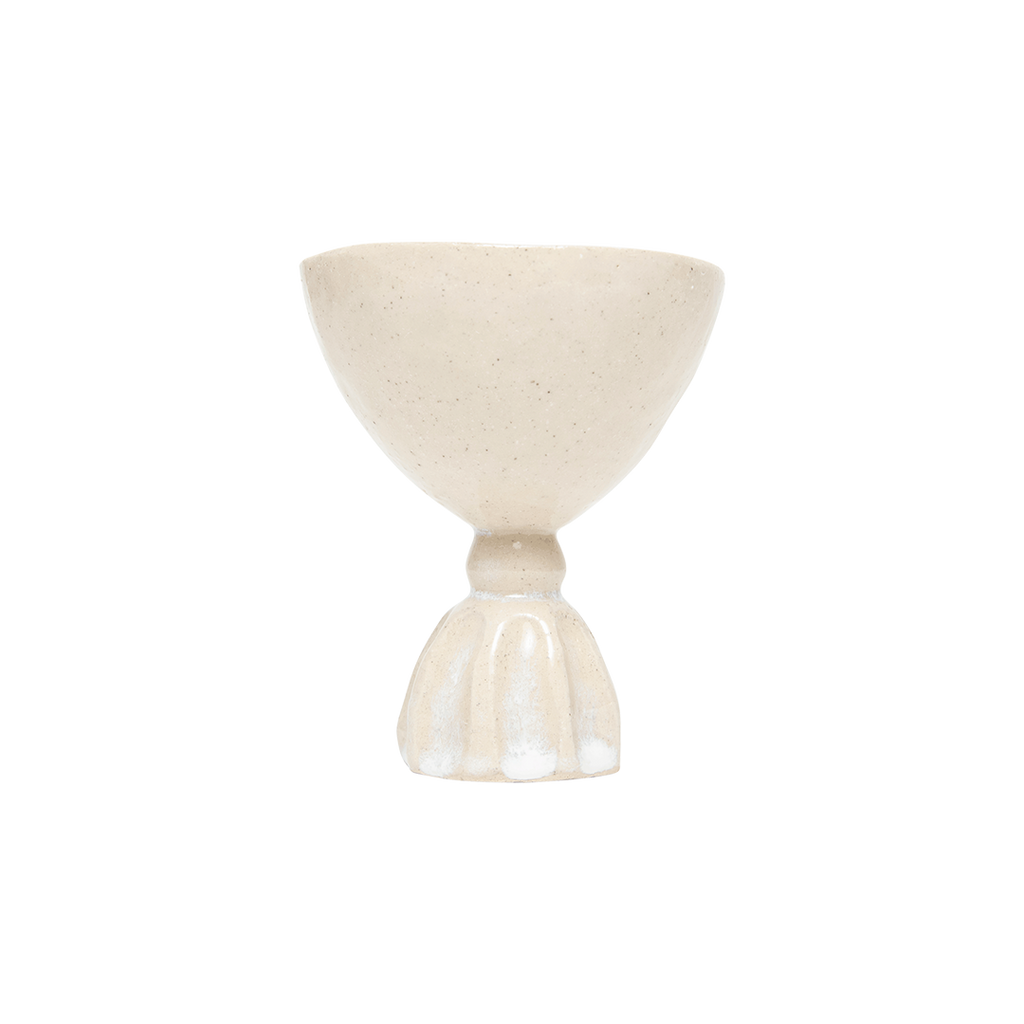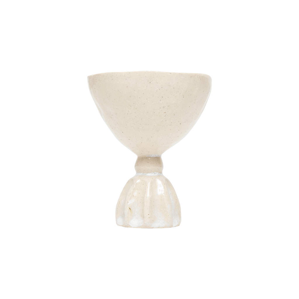 Hand-pinched and carved stoneware cup with clear glaze.