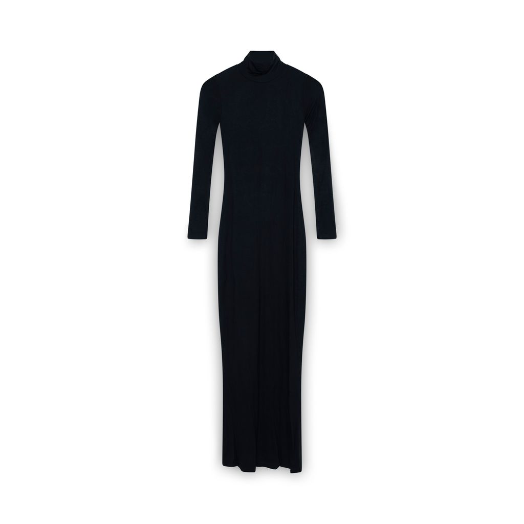 Features form-fitting design and tall neck