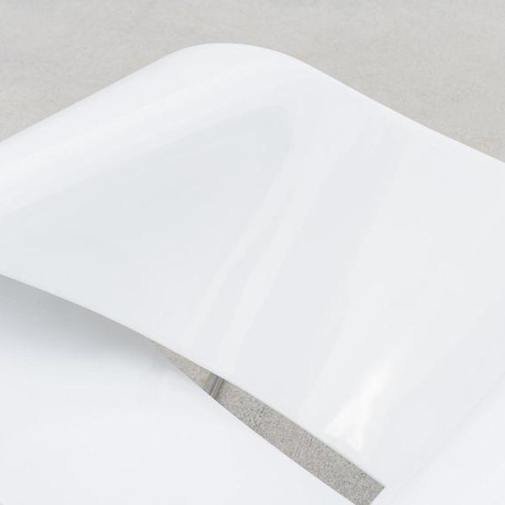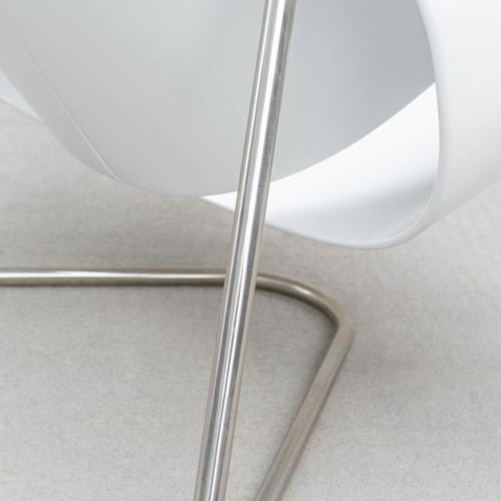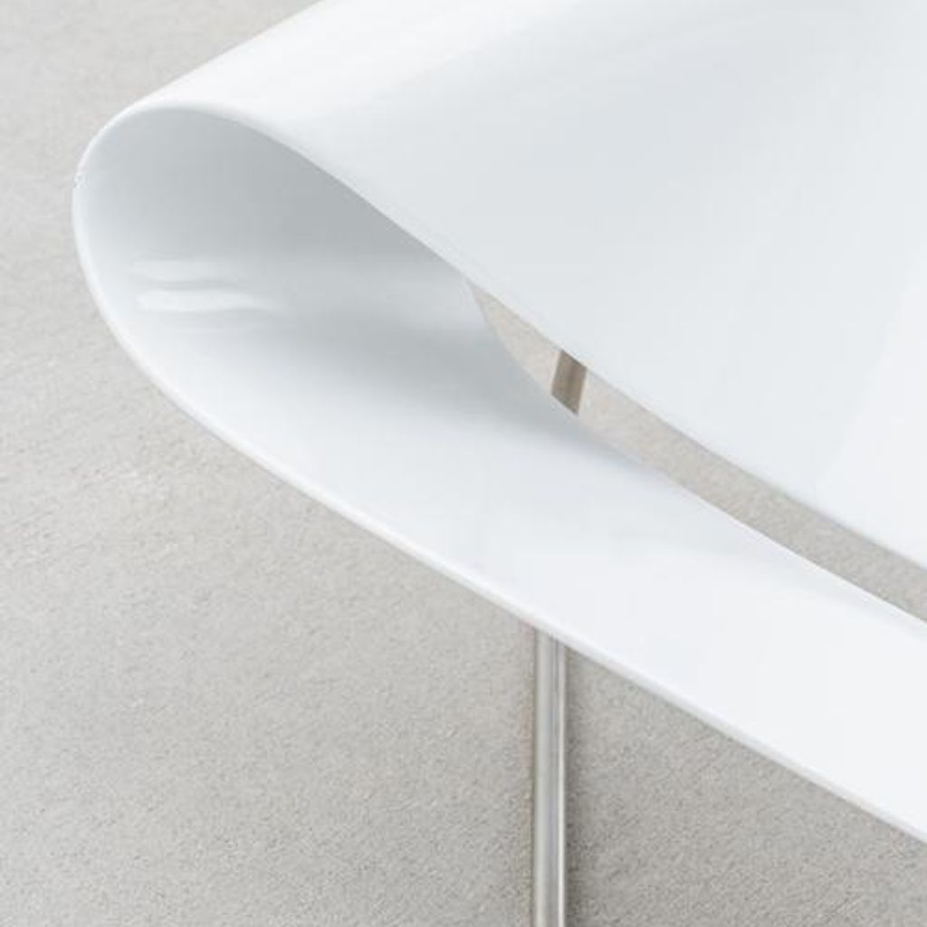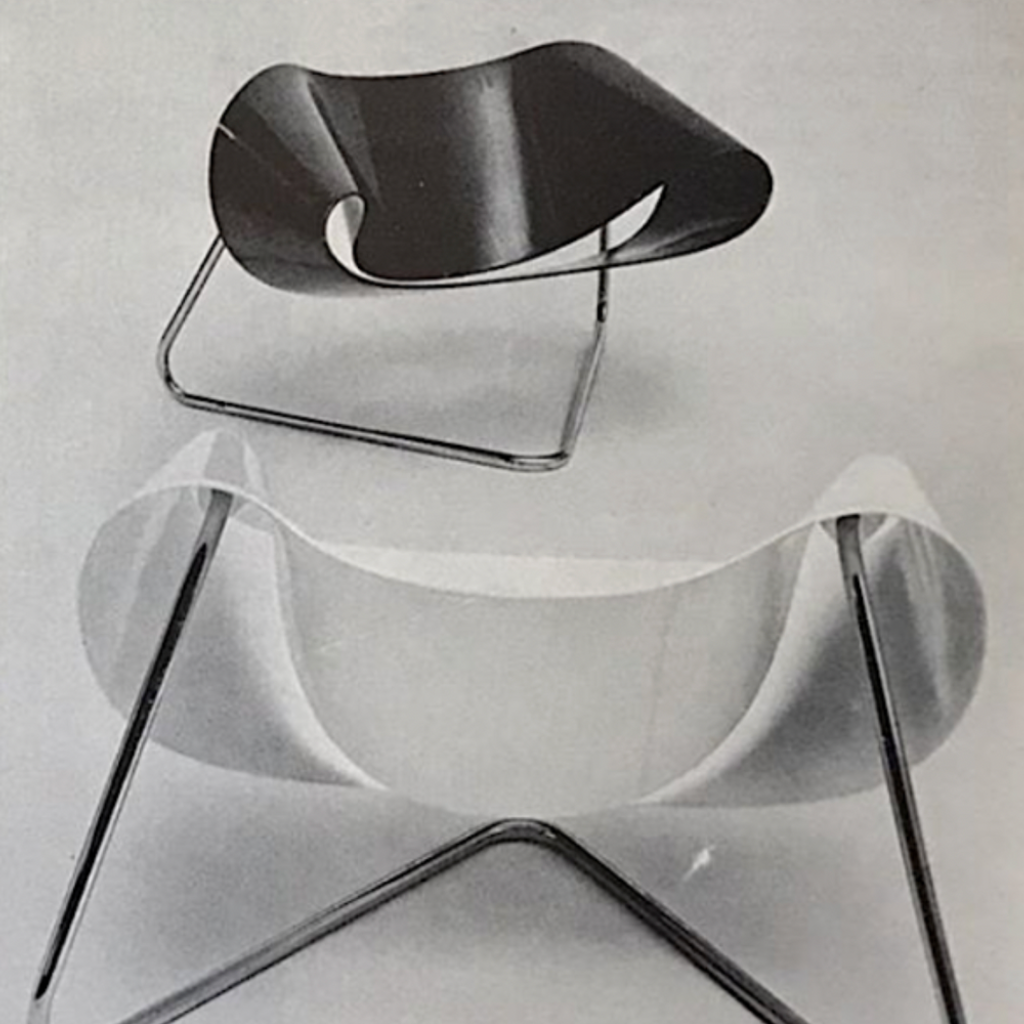 CL9 Ribbon Chair by Cesare Leonardi and Franca Stagi, also known as 'the easy chair'. A tubular chromed frame supports one continuous band of molded fiberglass. The seat is highly sculptural, changing shape from different viewpoints. It is attached to the base by means of rubber shock mounts which alongside the cantilevered construction provide a surprising degree of springiness and flex while sitting.