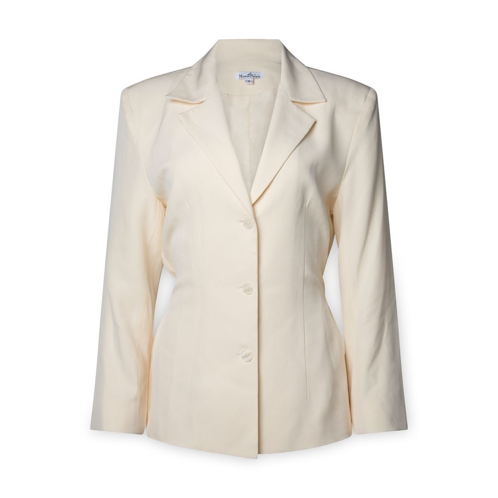 Classic Blazer in Leite features 100% poly-dye lot may vary, lining 100% silk.