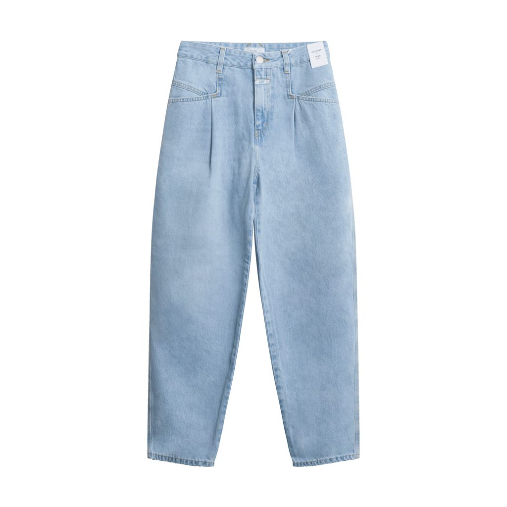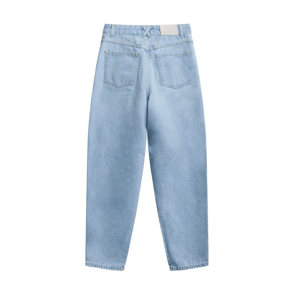 Light High-Waisted jeans with a button and zipper. Made with organic cotton
