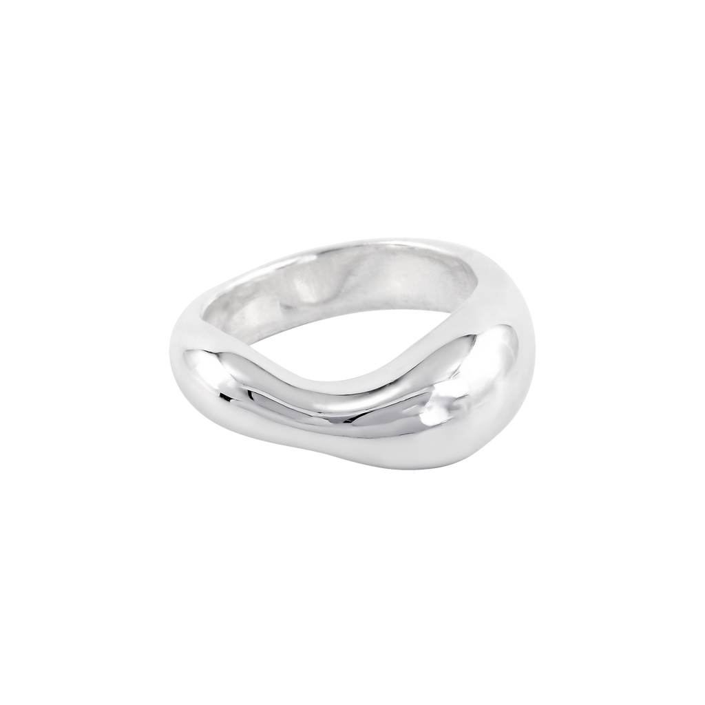 Modern accent ring with an organic shape. Cloud ring takes inspiration from Anish Kapoor's famous Cloudgate sculpture. Cloud ring effortlessly wraps around the finger. The hard metal renders itself fluid and subdued through the organic curves of the Cloud ring.