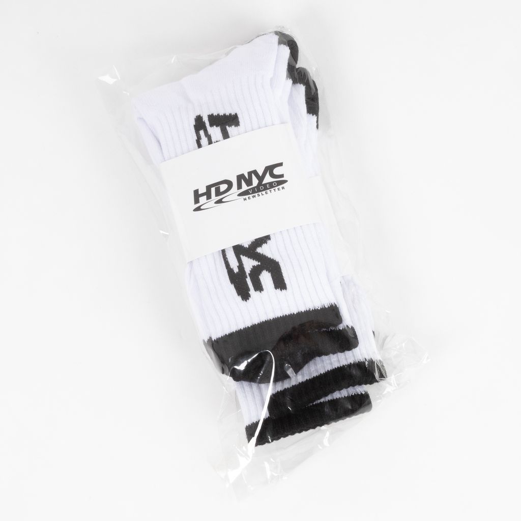 DVD meets NYC in these crew tube socks from CNY. Features hybrid HD NYC/DVD graphic on sides, as well as contrast colored tops, heels, and toes.