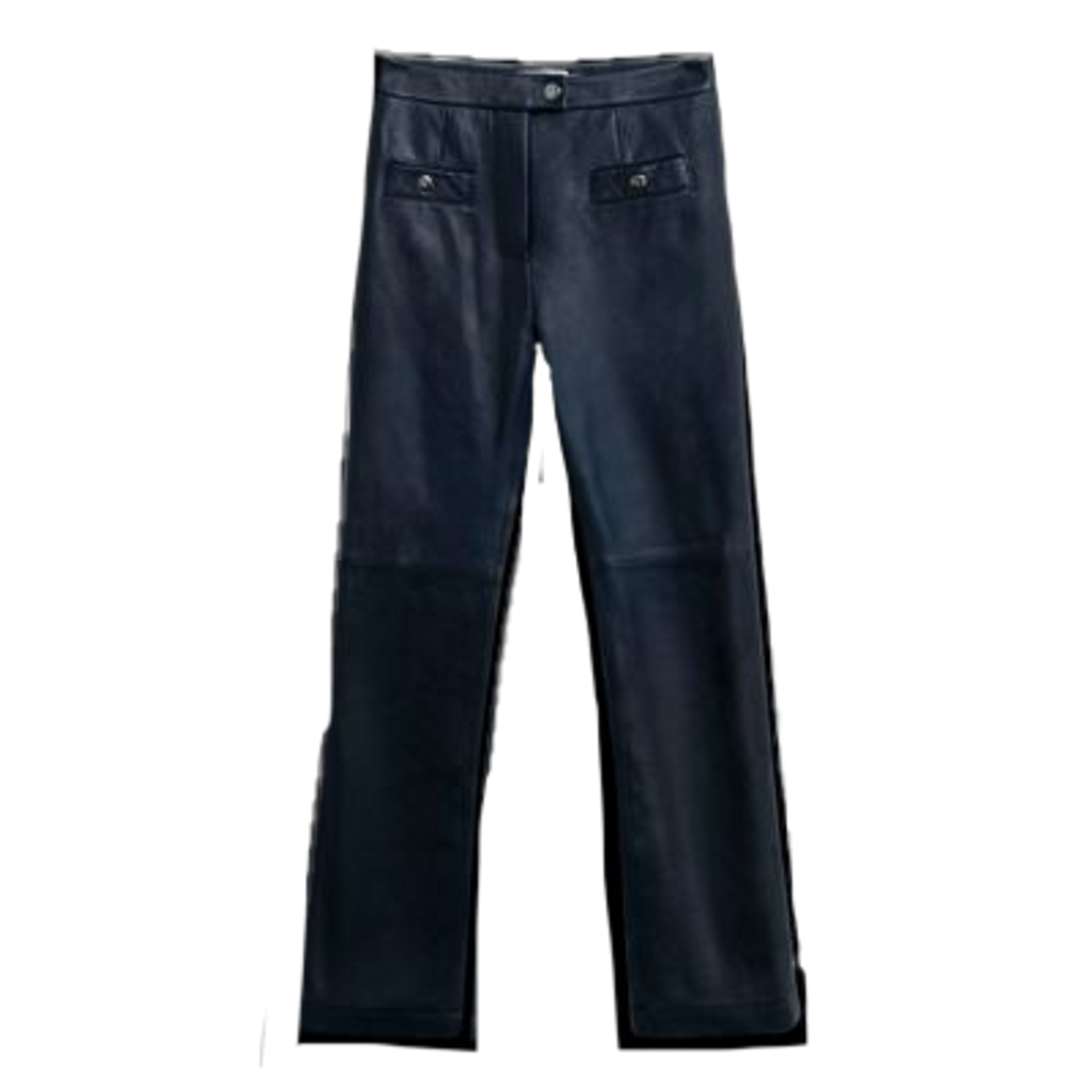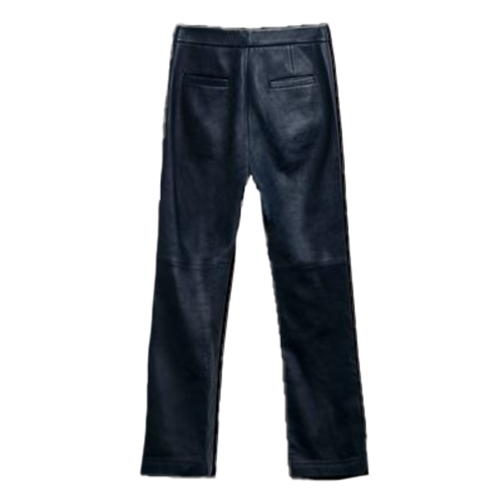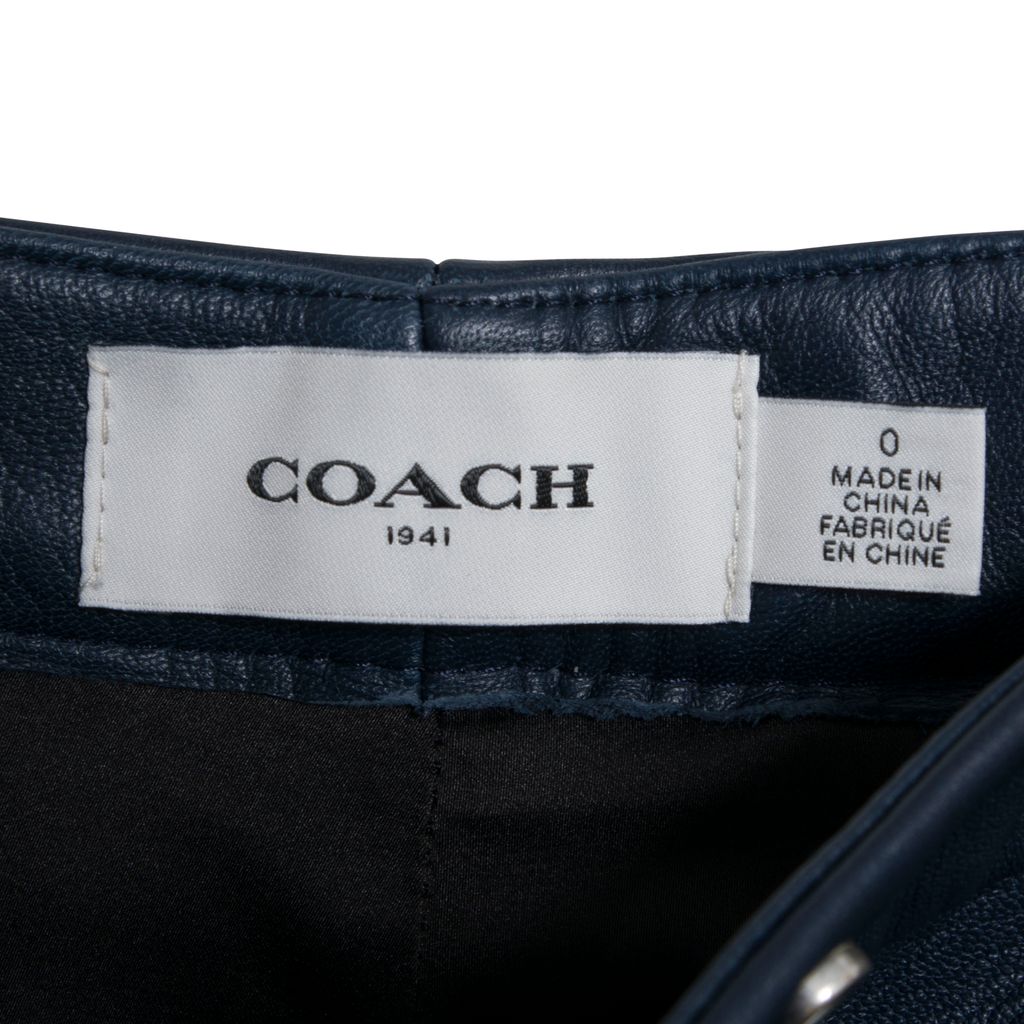 Crafted from supple lambskin, these luxe leather trousers from Coach feature a slightly-cropped flare leg and streamlined tailoring. Accented with zip fly with snap button closure, front pockets and back slip pockets. In excellent condtion.