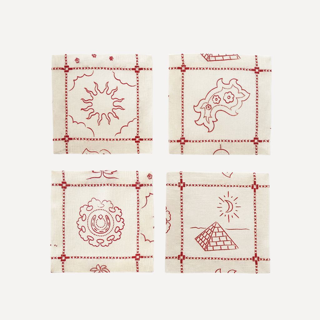 In our mission to tread as lightly as possible we make these cocktail napkins using any of the spare linen fabric we may have left over from our tablecloths, making each set of Four unique.