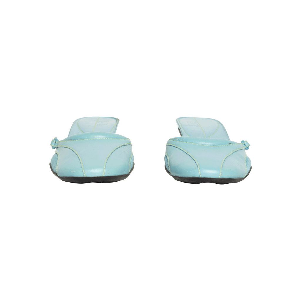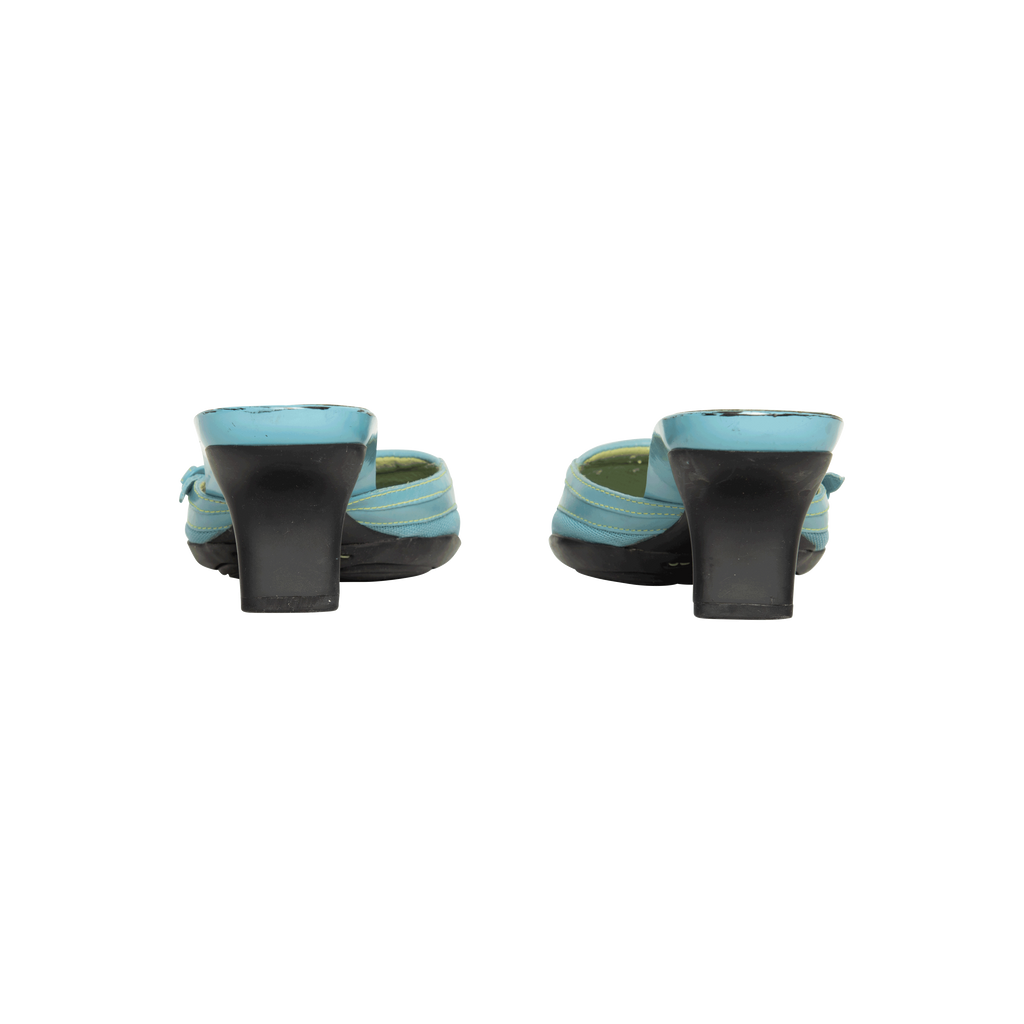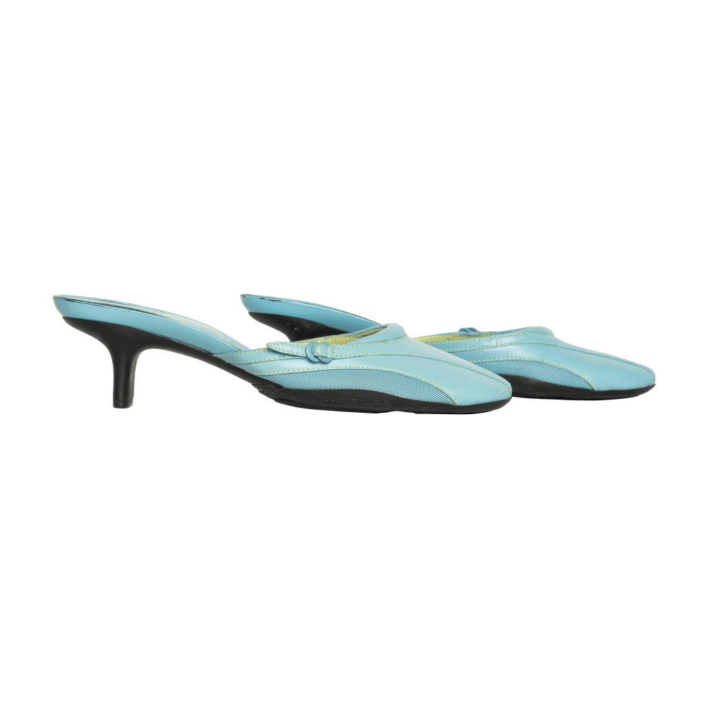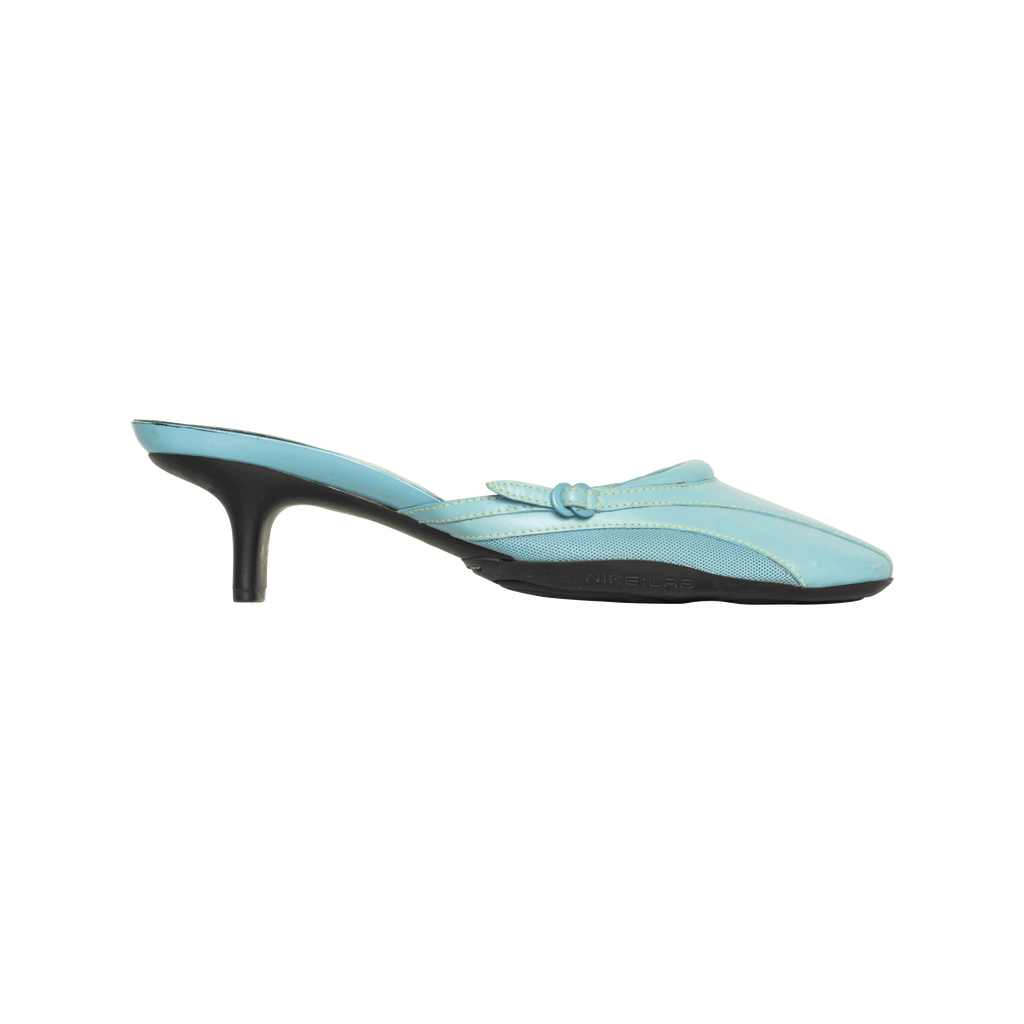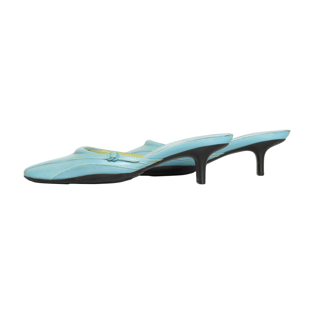 Cole Haan Turquoise Leather Kitten Heel features little buckle detail, kitten heel, and leather and mesh uppers.