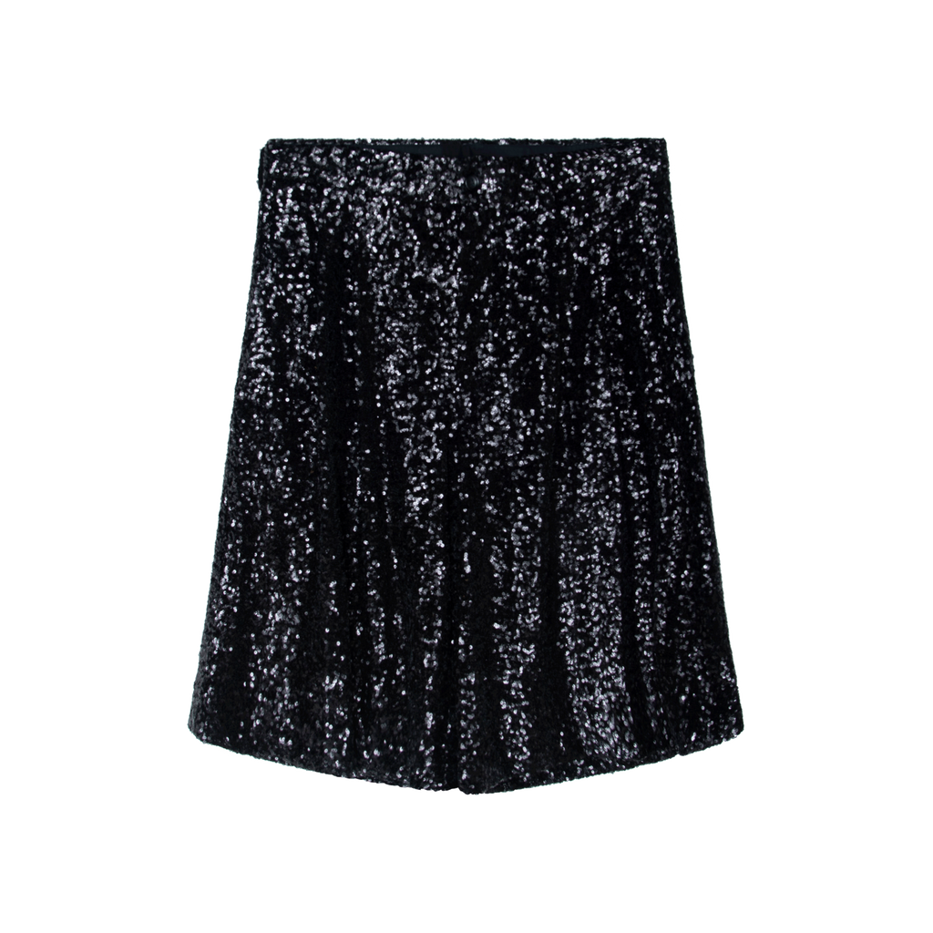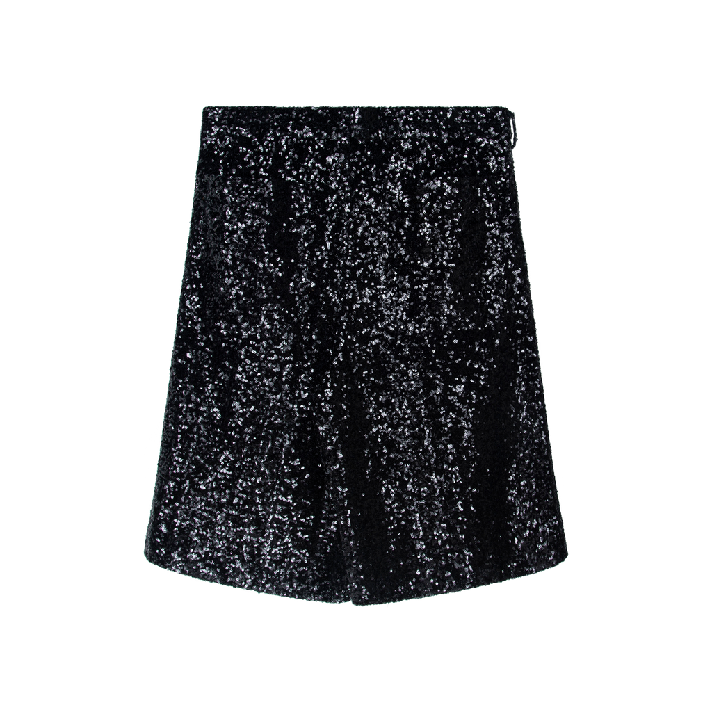 Comme des Garcons Black Sequin Shorts features sequin embellished fabric,4 pocket styling, and front zip closure.