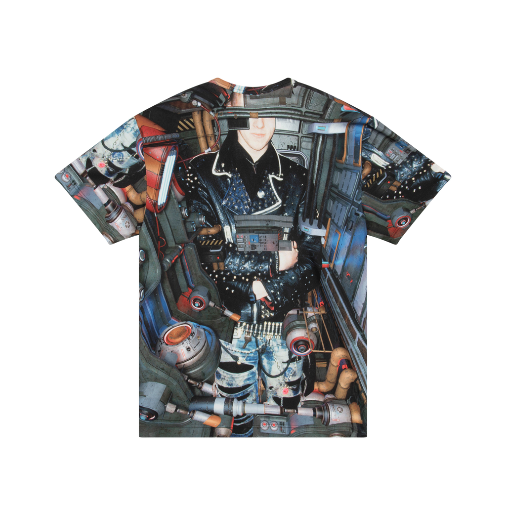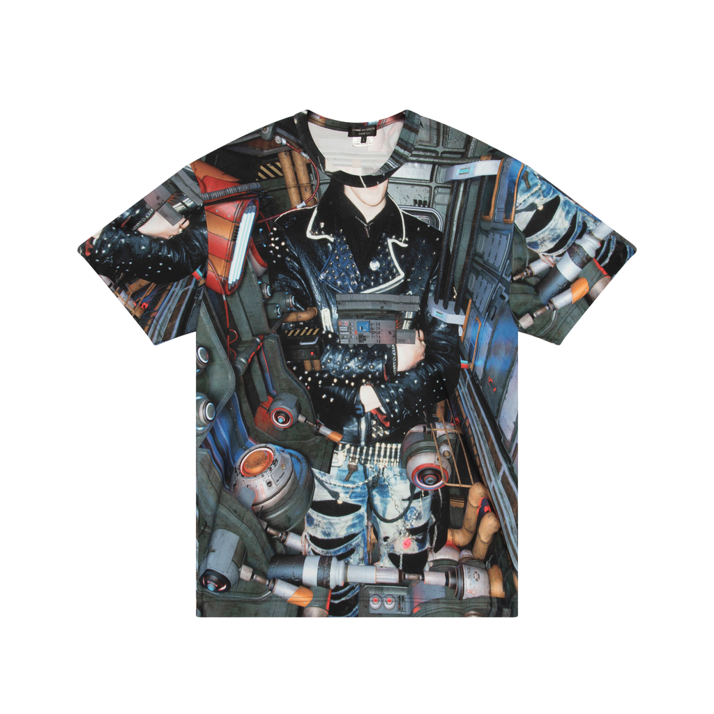 Comme Des Garçons Homme Plus Futuristic Print Airtex Tee features bound neckline and futuristic design print.