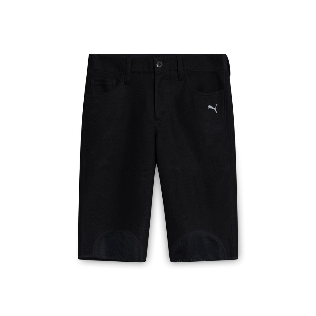 These black shorts feature breathable fabric, the Puma logo in grey, and functional pockets on the front and back.