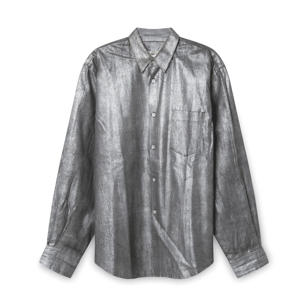 1994 Comme des Garçons olive wool twill shirt with silver painted coating. Peak CDG inventiveness. Also good if you want to dress up as tin man for next Halloween.