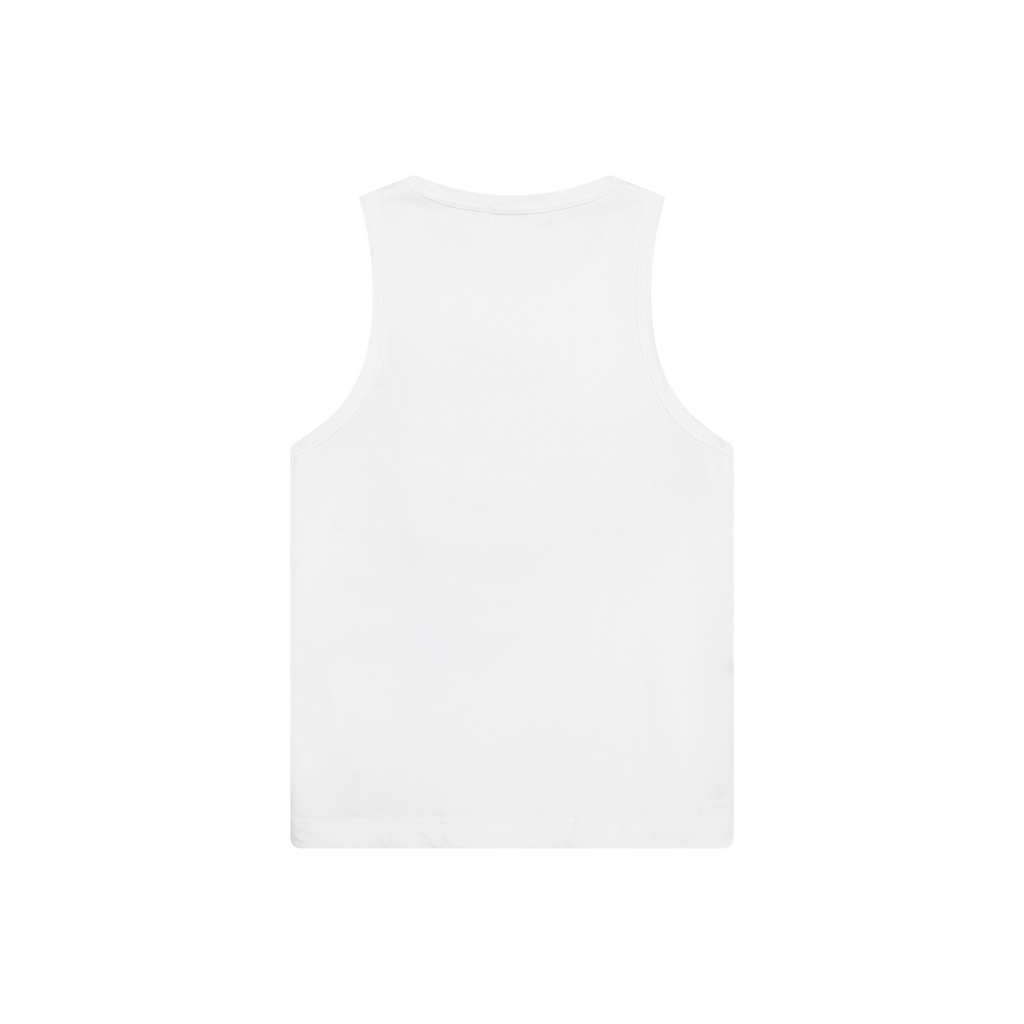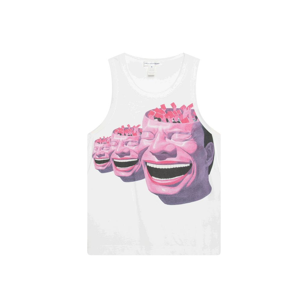 Comme Des Garçons Yue Minjun Tank features laughing faces design.
