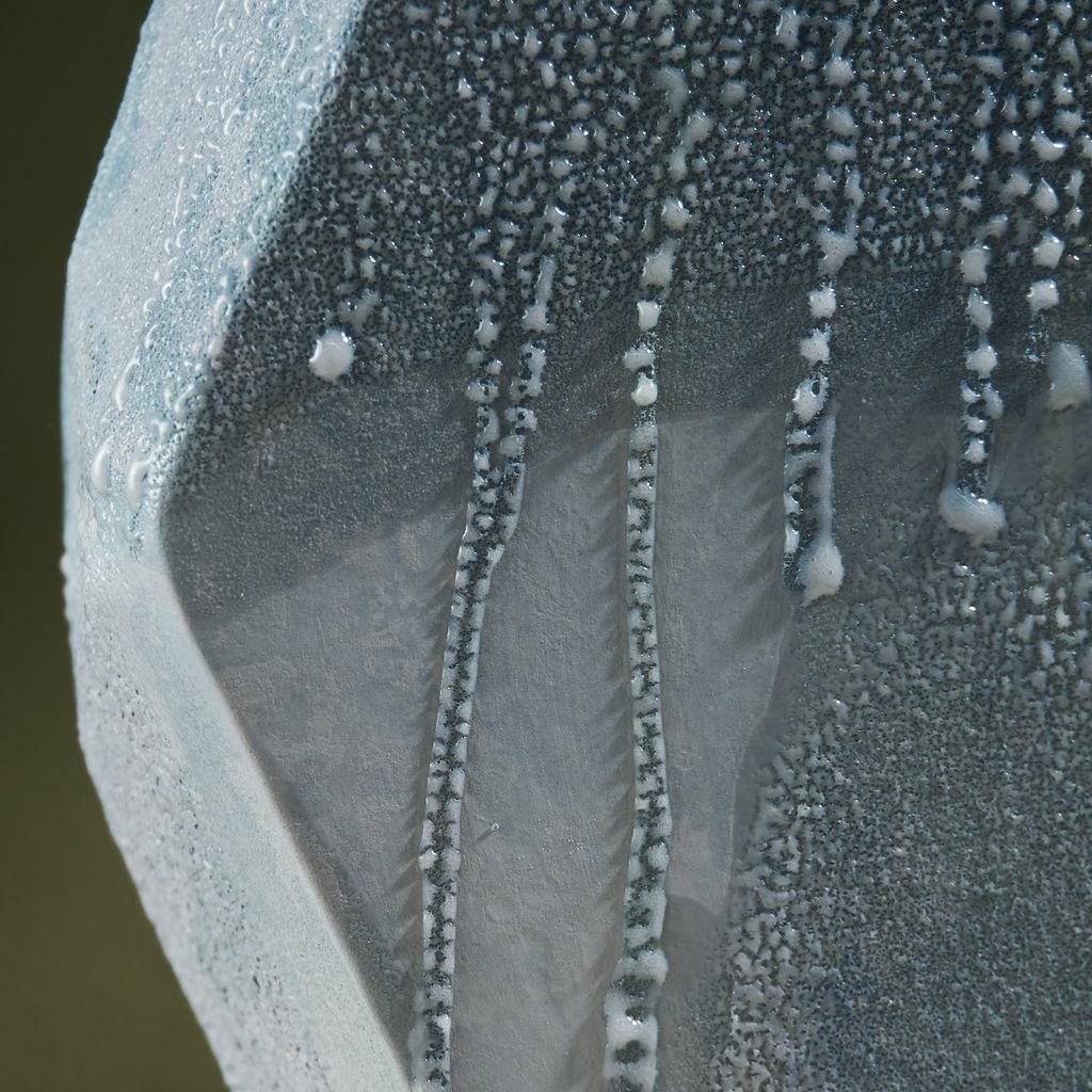 This sculpture is inspired by the moisture-covered windows often seen in the Netherlands. The artist translated the soft, blurred landscapes created by condensation into ceramic works. Using a glaze developed specifically for this series, the surfaces capture the appearance of moisture gathering. The collection reflects brief, disappearing moments of daily life through a quiet, poetic lens. She is currently expanding the Condensation Collection, first presented at Dutch Design Week 2025.