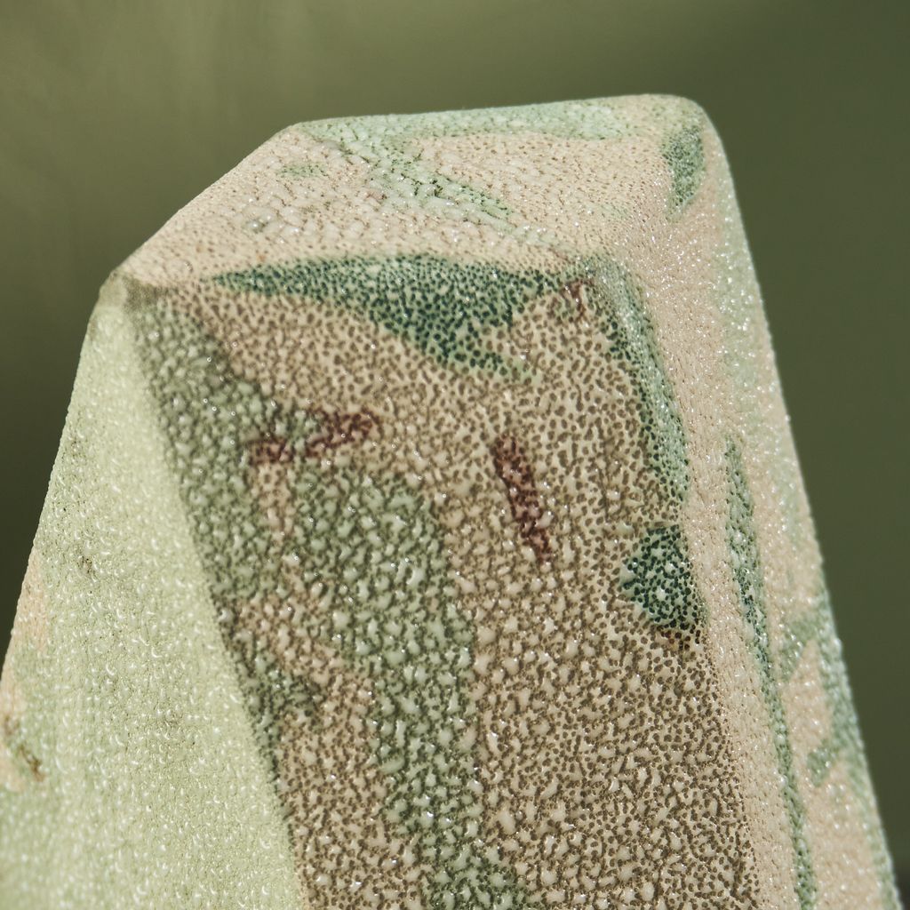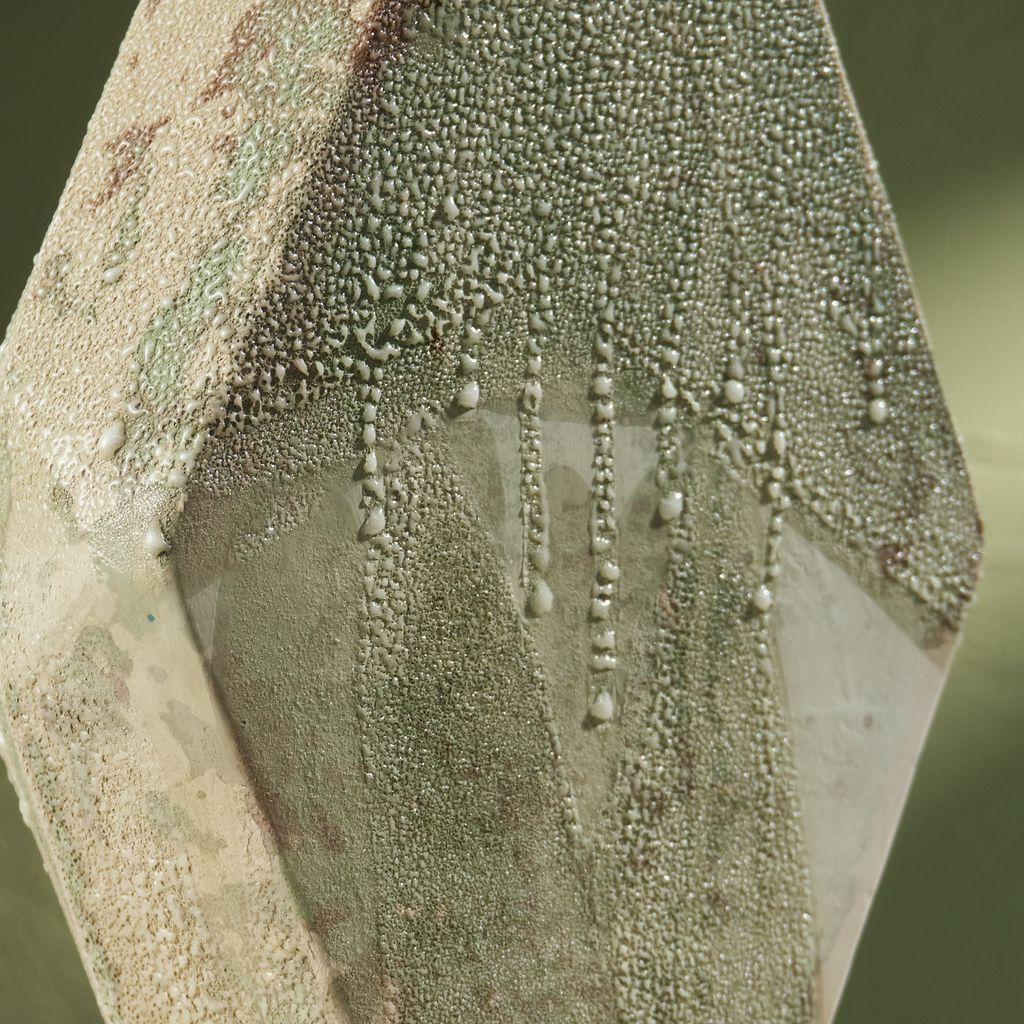 This sculpture is inspired by the moisture-covered windows often seen in the Netherlands. The artist translated the soft, blurred landscapes created by condensation into ceramic works. Using a glaze developed specifically for this series, the surfaces capture the appearance of moisture gathering. The collection reflects brief, disappearing moments of daily life through a quiet, poetic lens. She is currently expanding the Condensation Collection, first presented at Dutch Design Week 2025.