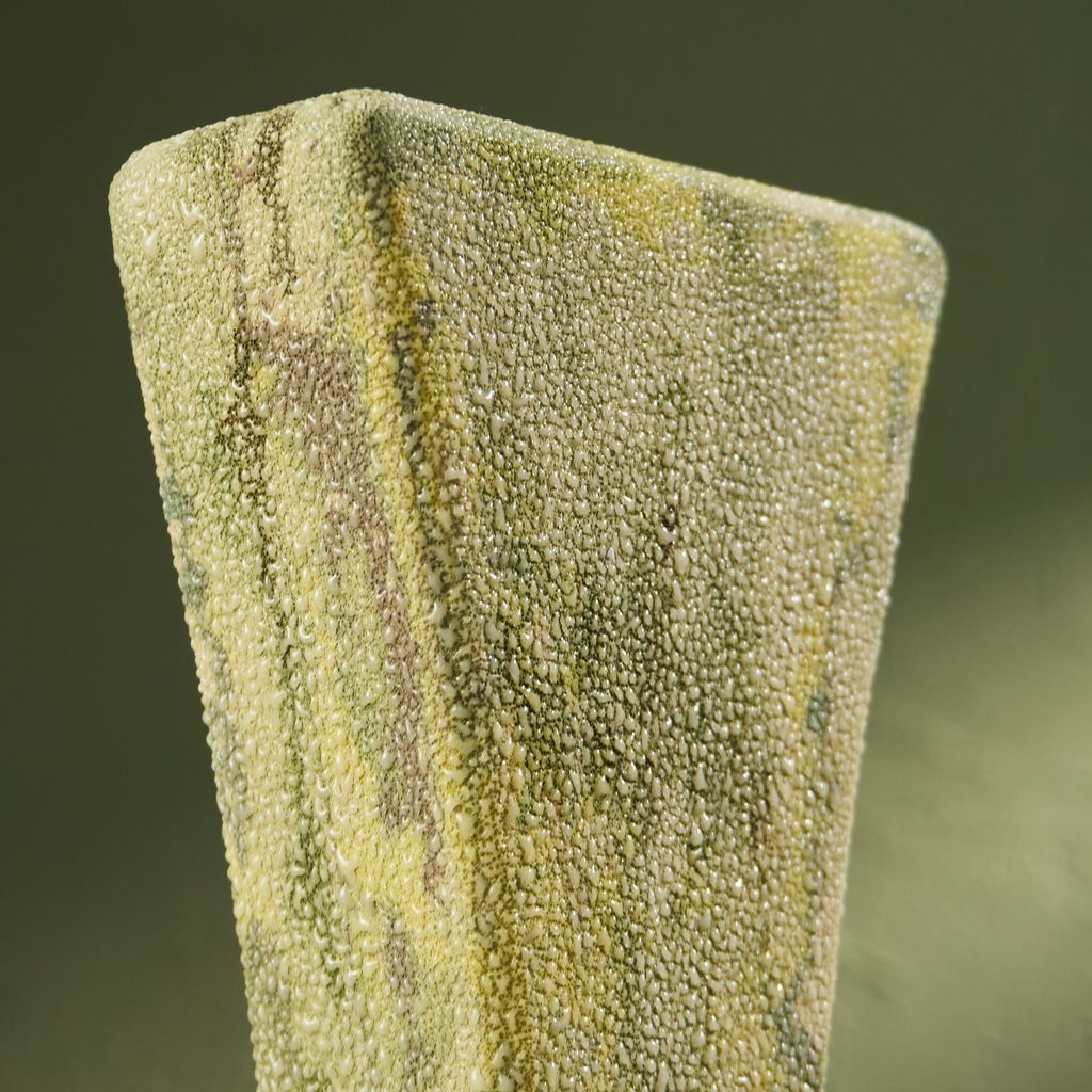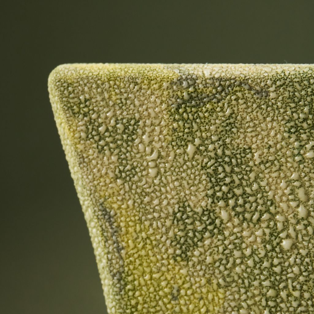 This sculpture is inspired by the moisture-covered windows often seen in the Netherlands. The artist translated the soft, blurred landscapes created by condensation into ceramic works. Using a glaze developed specifically for this series, the surfaces capture the appearance of moisture gathering. The collection reflects brief, disappearing moments of daily life through a quiet, poetic lens. She is currently expanding the Condensation Collection, first presented at Dutch Design Week 2025.
