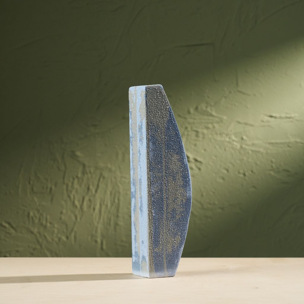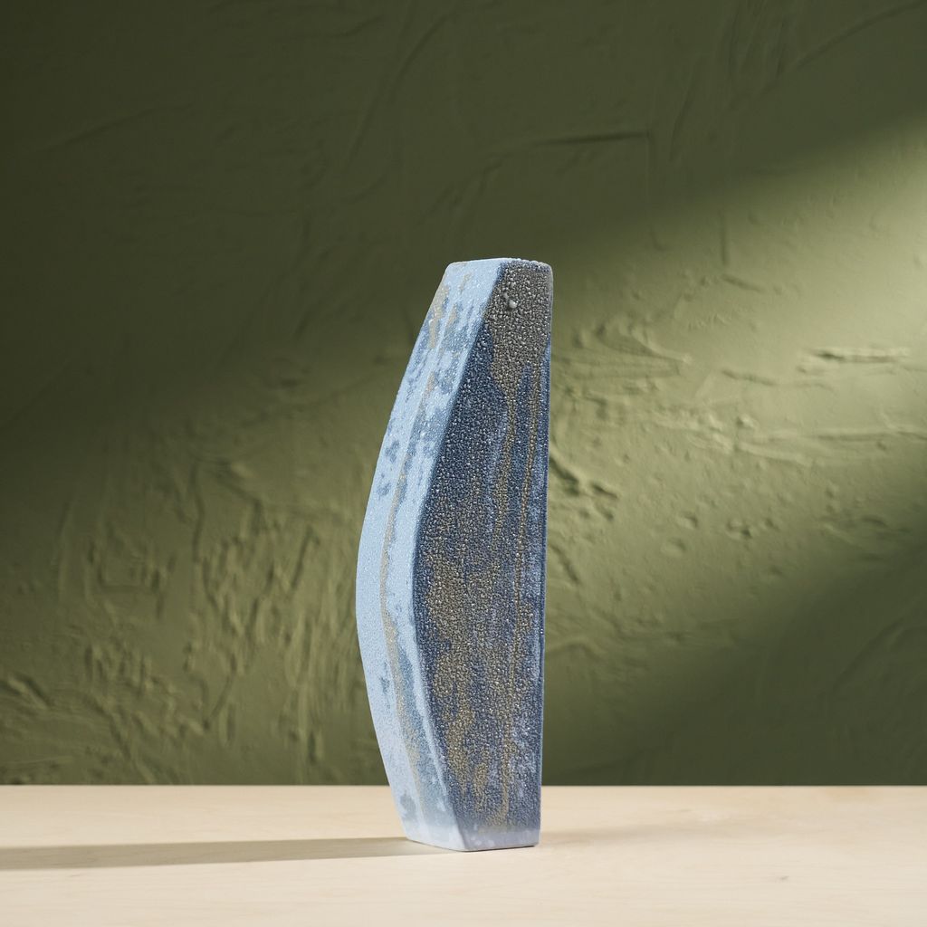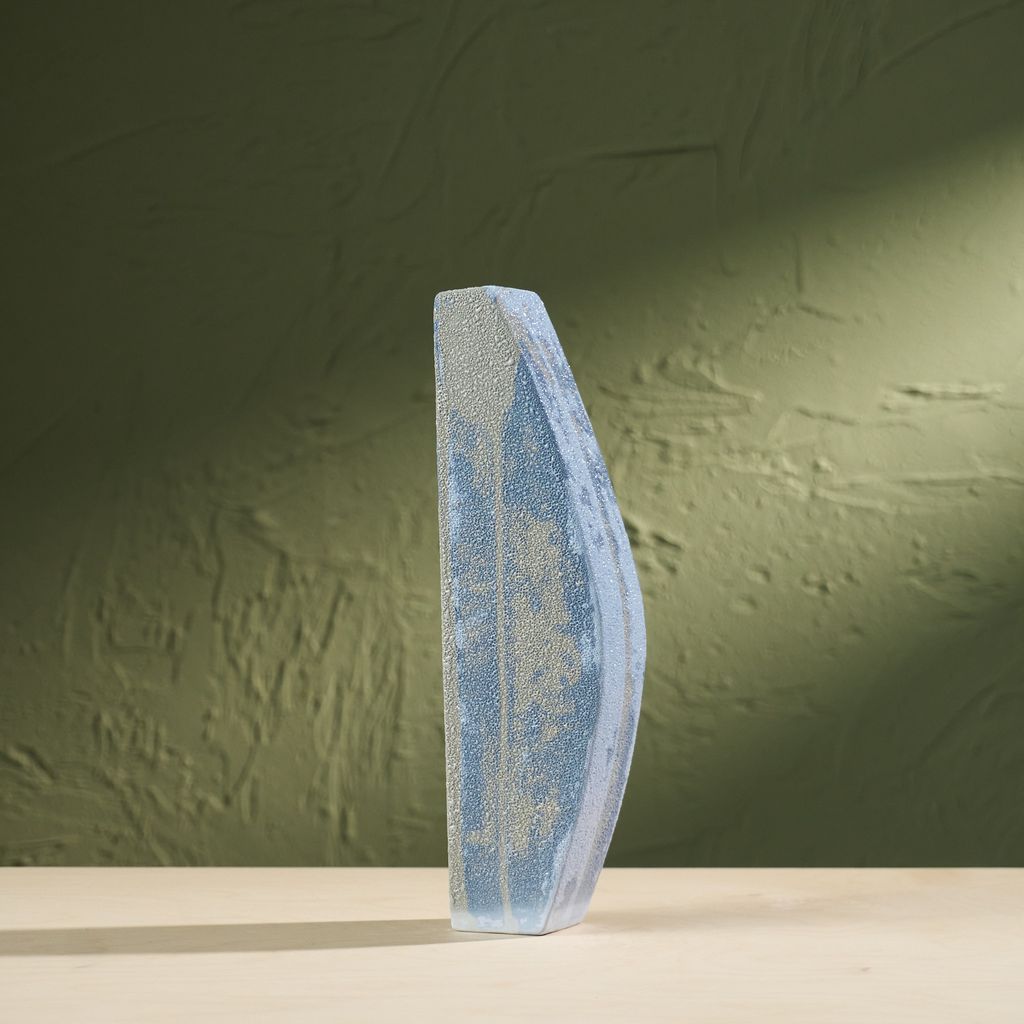 This sculpture is inspired by the moisture-covered windows often seen in the Netherlands. The artist translated the soft, blurred landscapes created by condensation into ceramic works. Using a glaze developed specifically for this series, the surfaces capture the appearance of moisture gathering. The collection reflects brief, disappearing moments of daily life through a quiet, poetic lens. She is currently expanding the Condensation Collection, first presented at Dutch Design Week 2025.