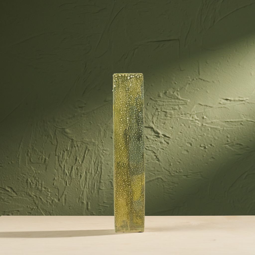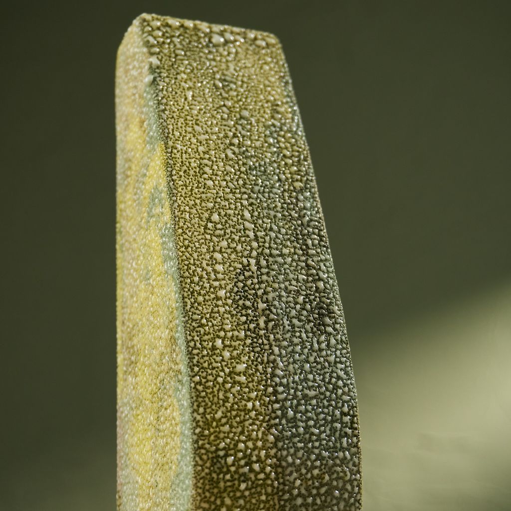 This sculpture is inspired by the moisture-covered windows often seen in the Netherlands. The artist translated the soft, blurred landscapes created by condensation into ceramic works. Using a glaze developed specifically for this series, the surfaces capture the appearance of moisture gathering. The collection reflects brief, disappearing moments of daily life through a quiet, poetic lens. She is currently expanding the Condensation Collection, first presented at Dutch Design Week 2025.