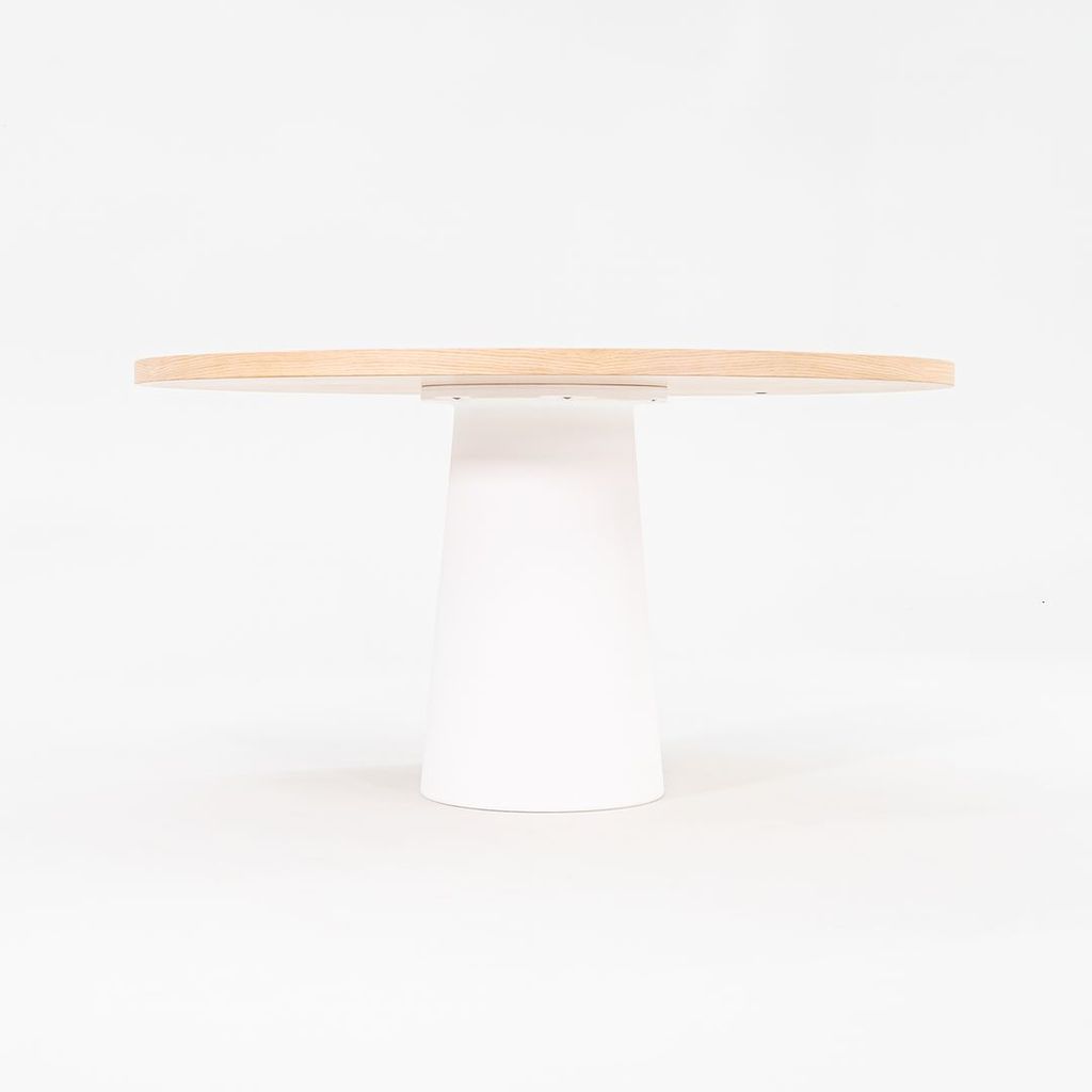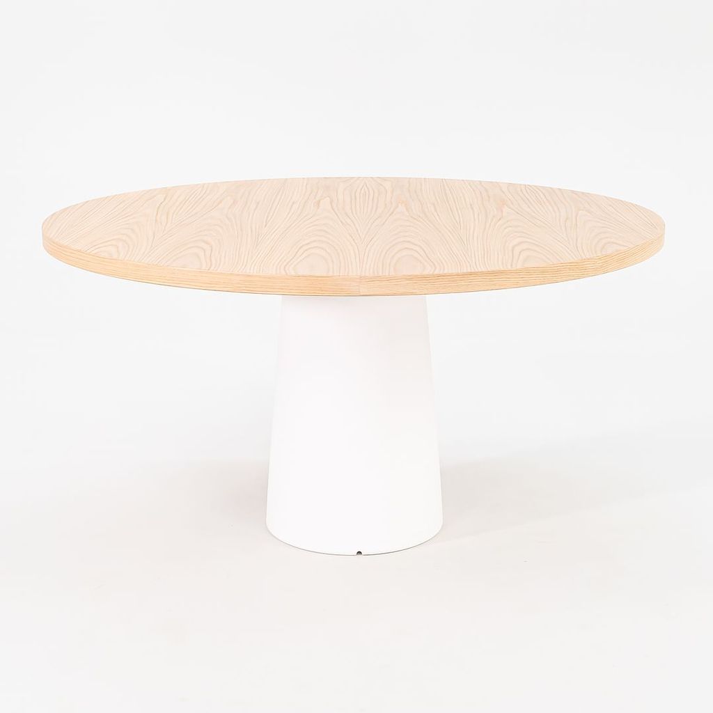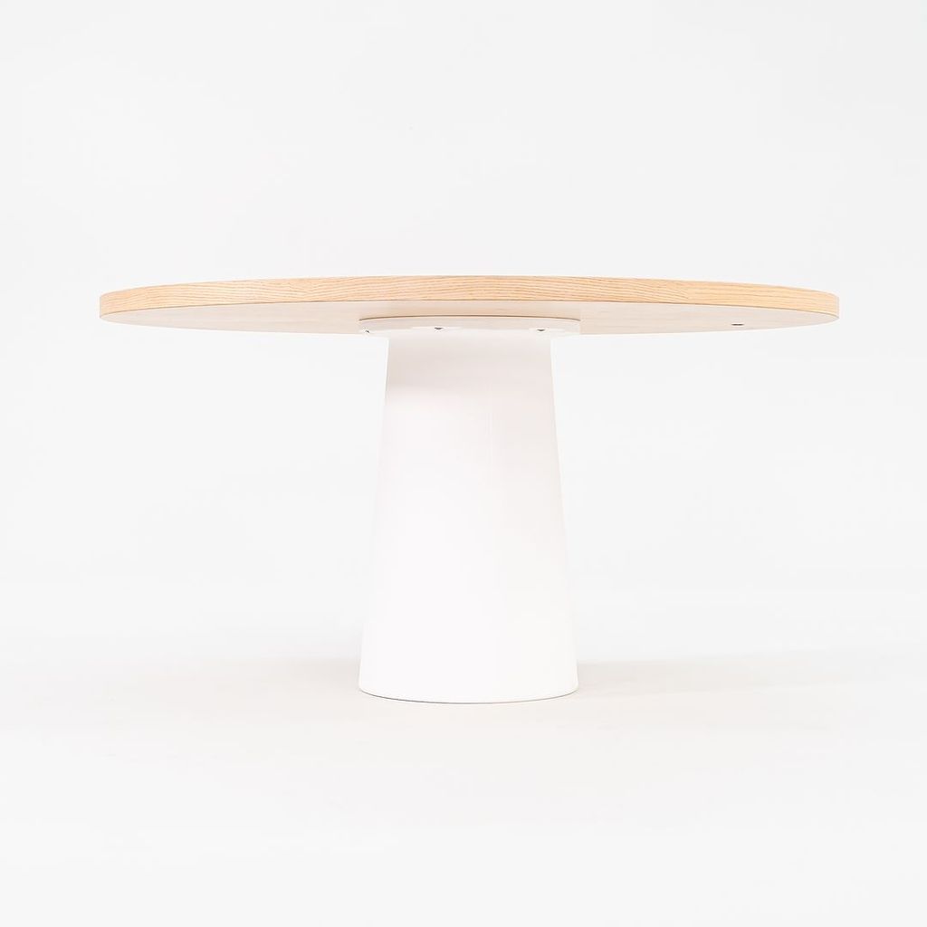 Listed for sale is a Container Dining Table made of solid white washed oak with a white polyethylene base. The table was designed by Marcel Wanders and produced by Moooi in the Netherlands. It dates to circa 2022 and is guaranteed as authentic. Condition is excellent. See photos.