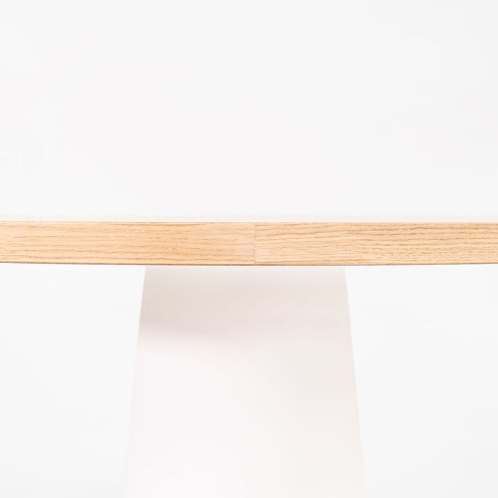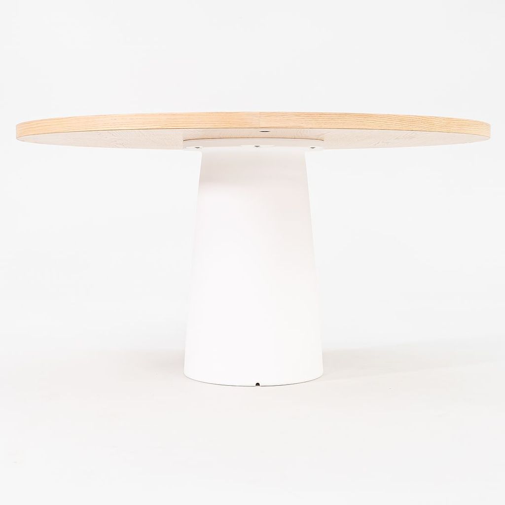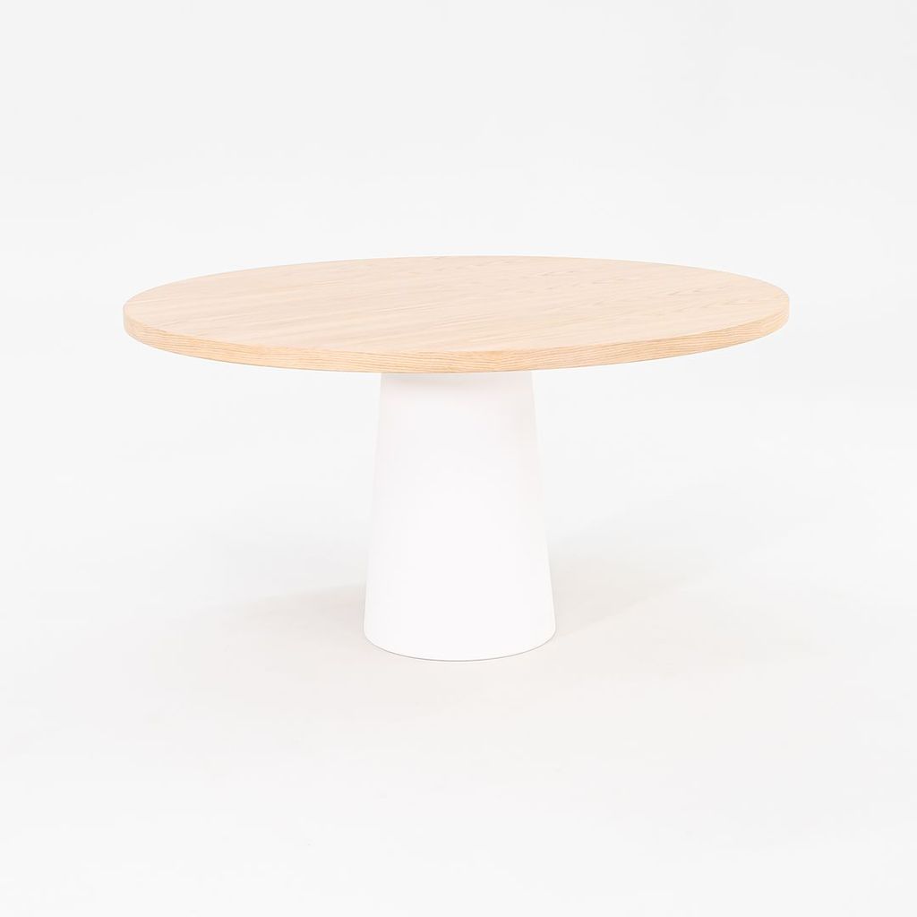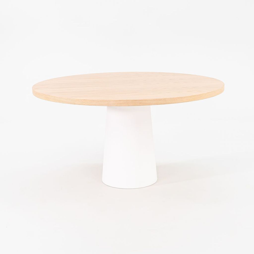 Listed for sale is a Container Dining Table made of solid white washed oak with a white polyethylene base. The table was designed by Marcel Wanders and produced by Moooi in the Netherlands. It dates to circa 2022 and is guaranteed as authentic. Condition is excellent. See photos.