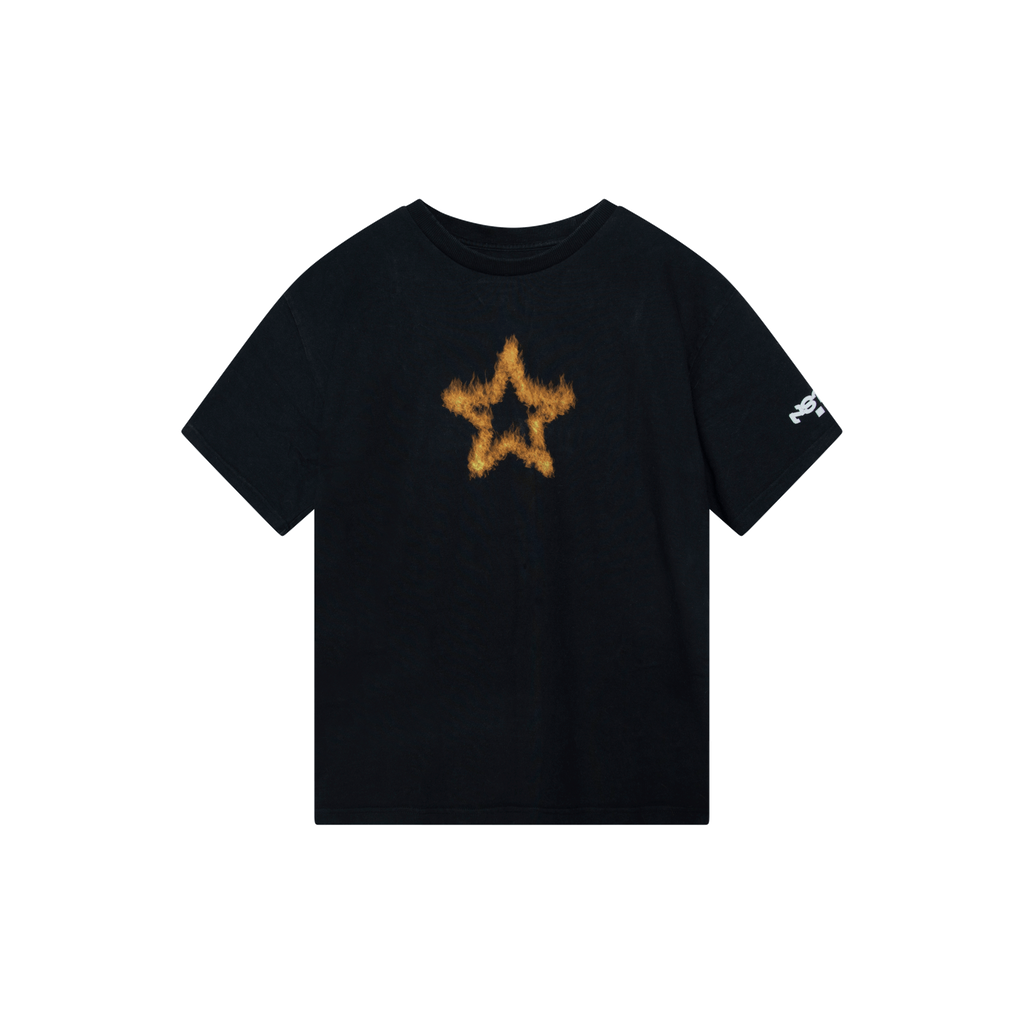 Converse x A$AP Nast Playing with Fire Since 1990 Tee features flaming star graphic on front and 'Playing With Fire Since 1990' graphic on back.