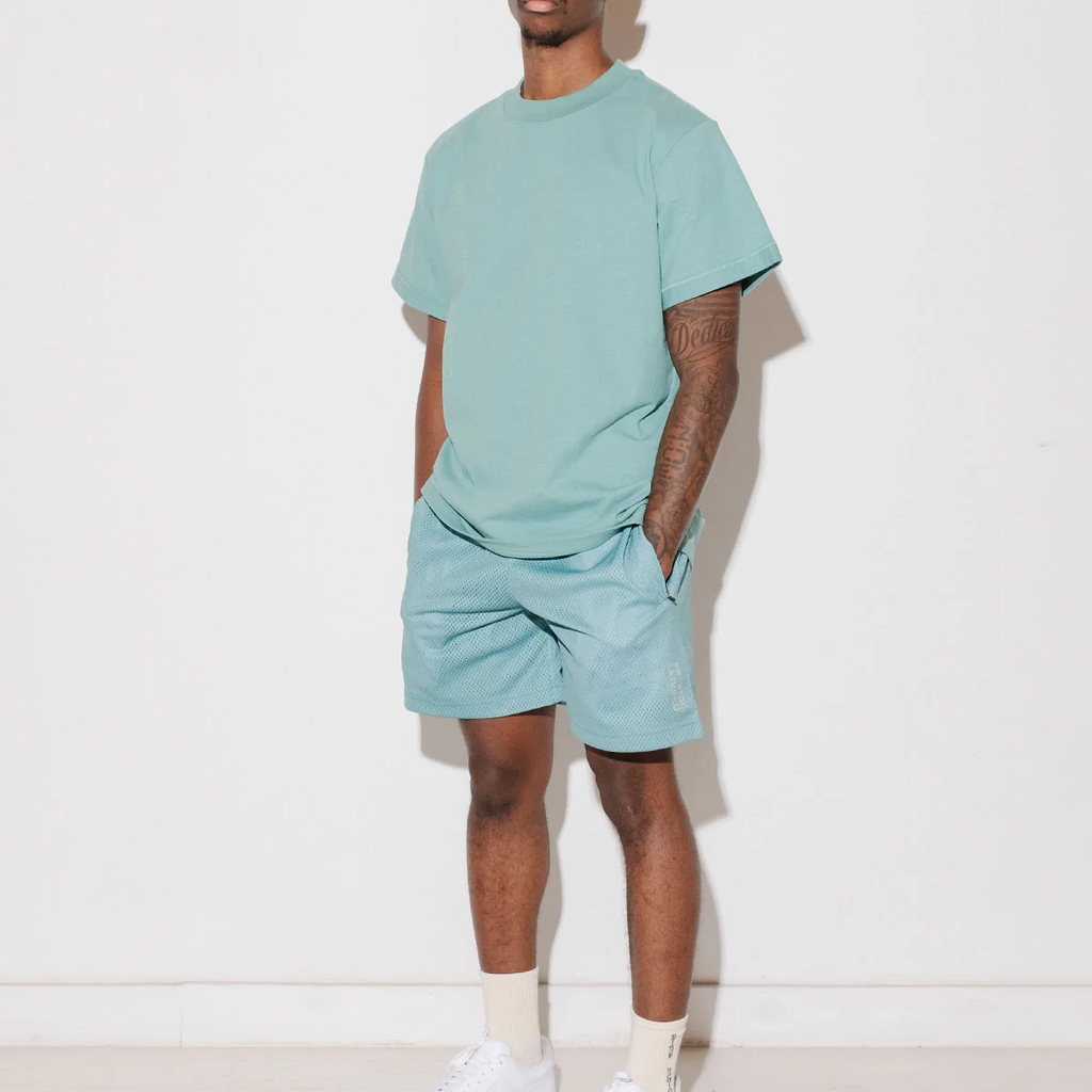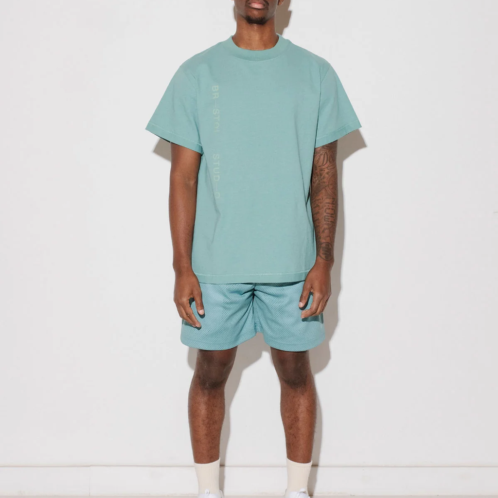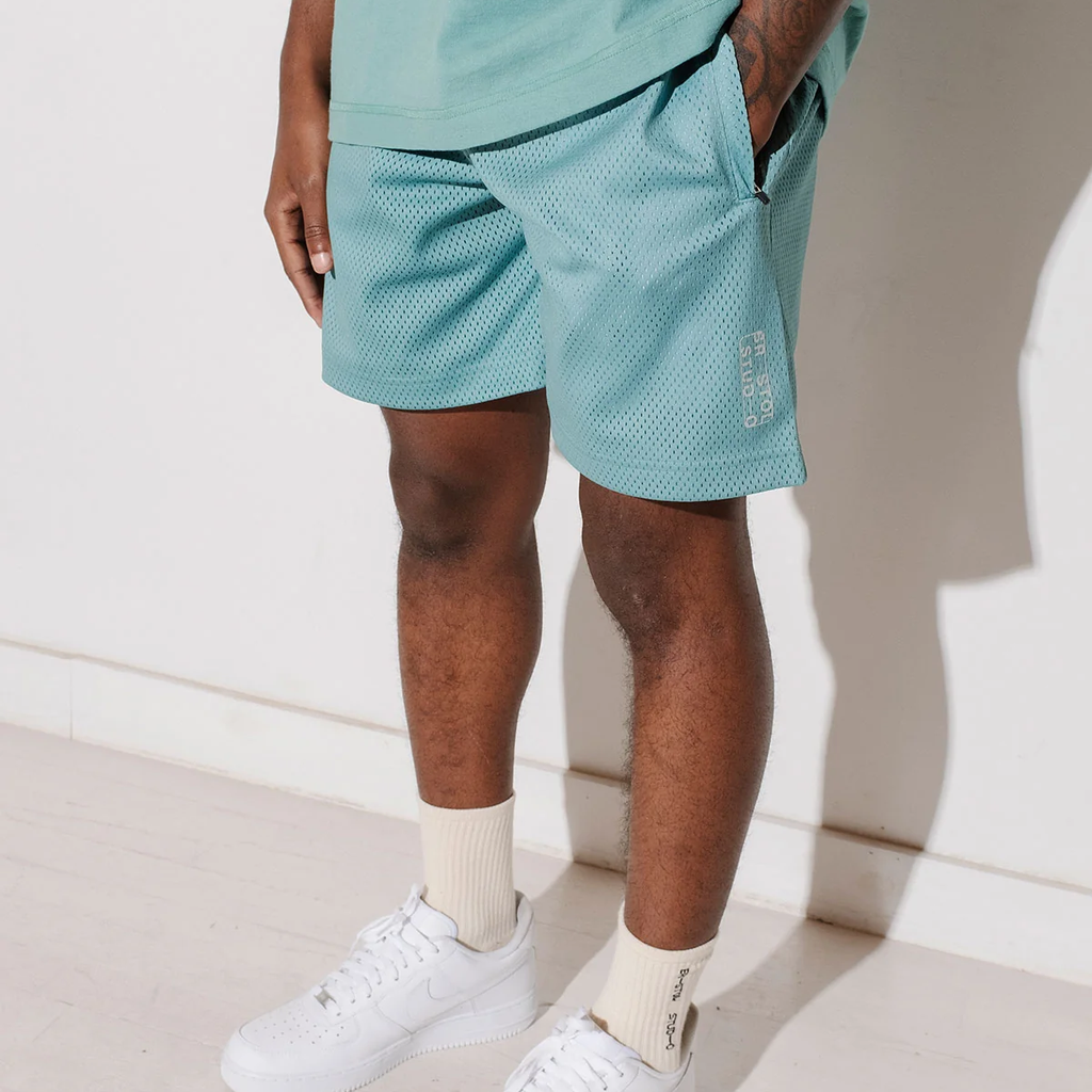 Core Short is a polyester eyelet-mesh basketball short and features printed Bristol Studio logo, zipper pockets on both sides for safe keeping, and interior waistband drawcord. Made in Los Angeles.