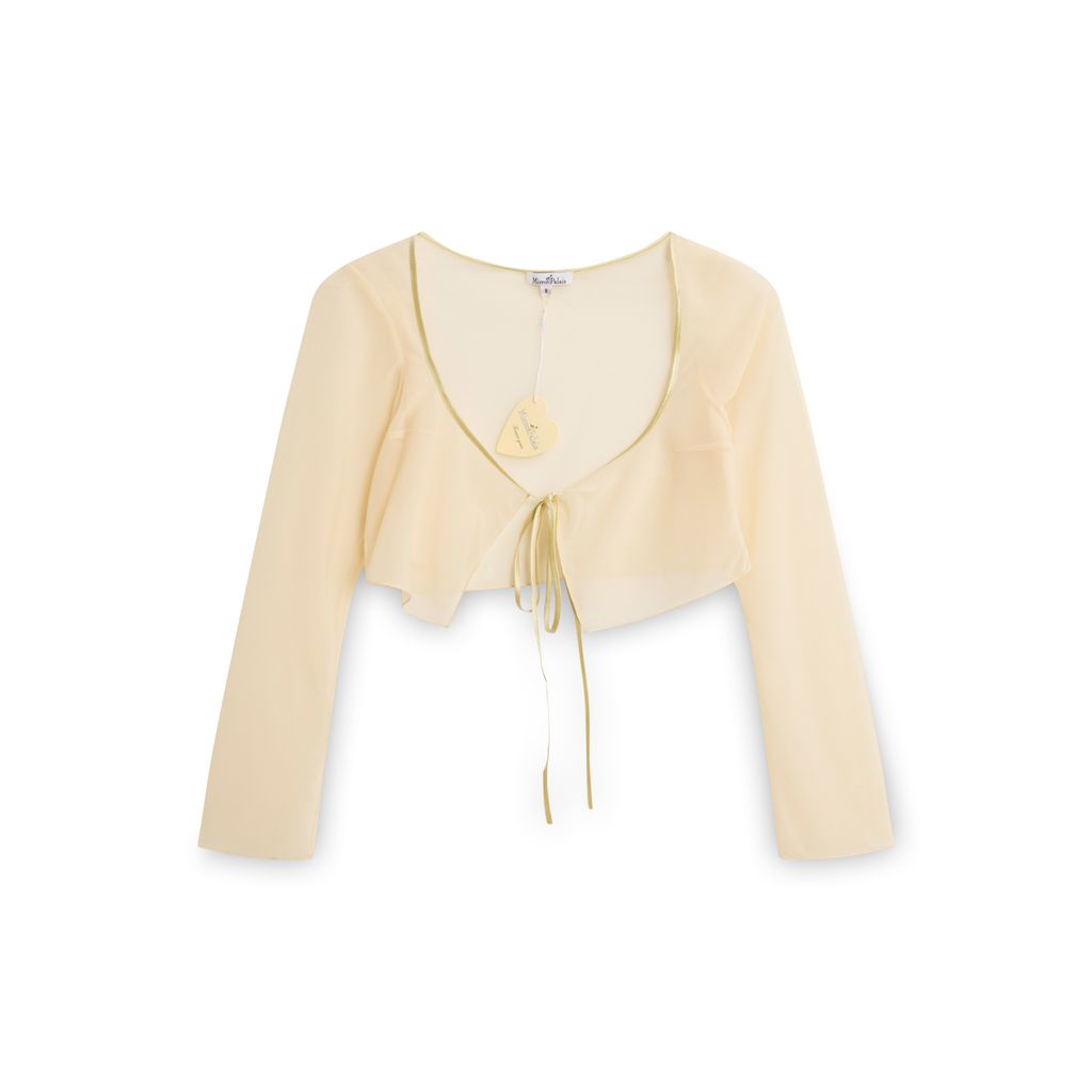 Corset Cover in Lemon features 100% poly-dye lot may vary, trim 100% silk.