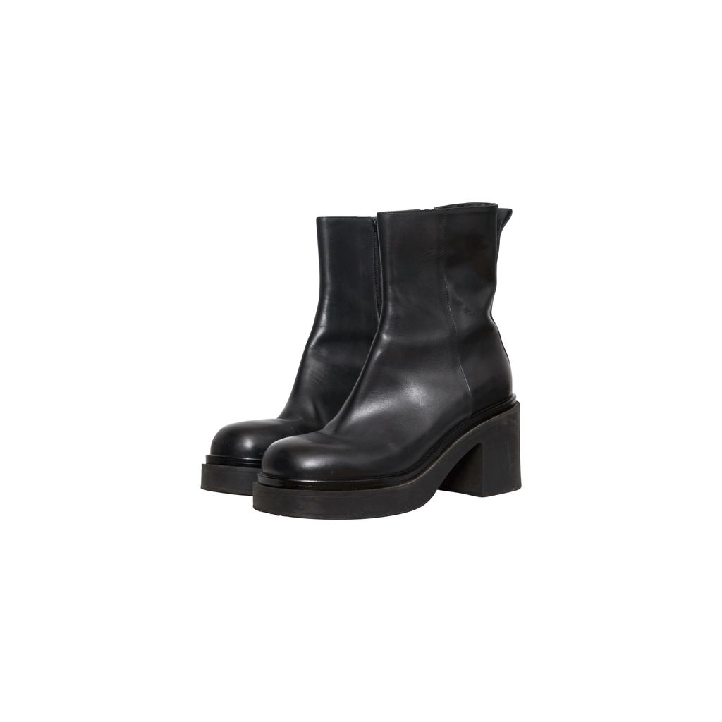 Cos Ankle Booties feature side zip closure, pleat detail, and block heel